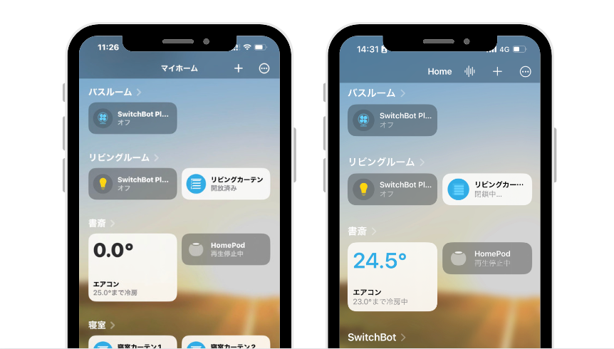 パソコンの電源や扇風機、ガレージドア、洗濯機、給湯器まで、iPhoneのコントロールセンターから操作できるようになりました。