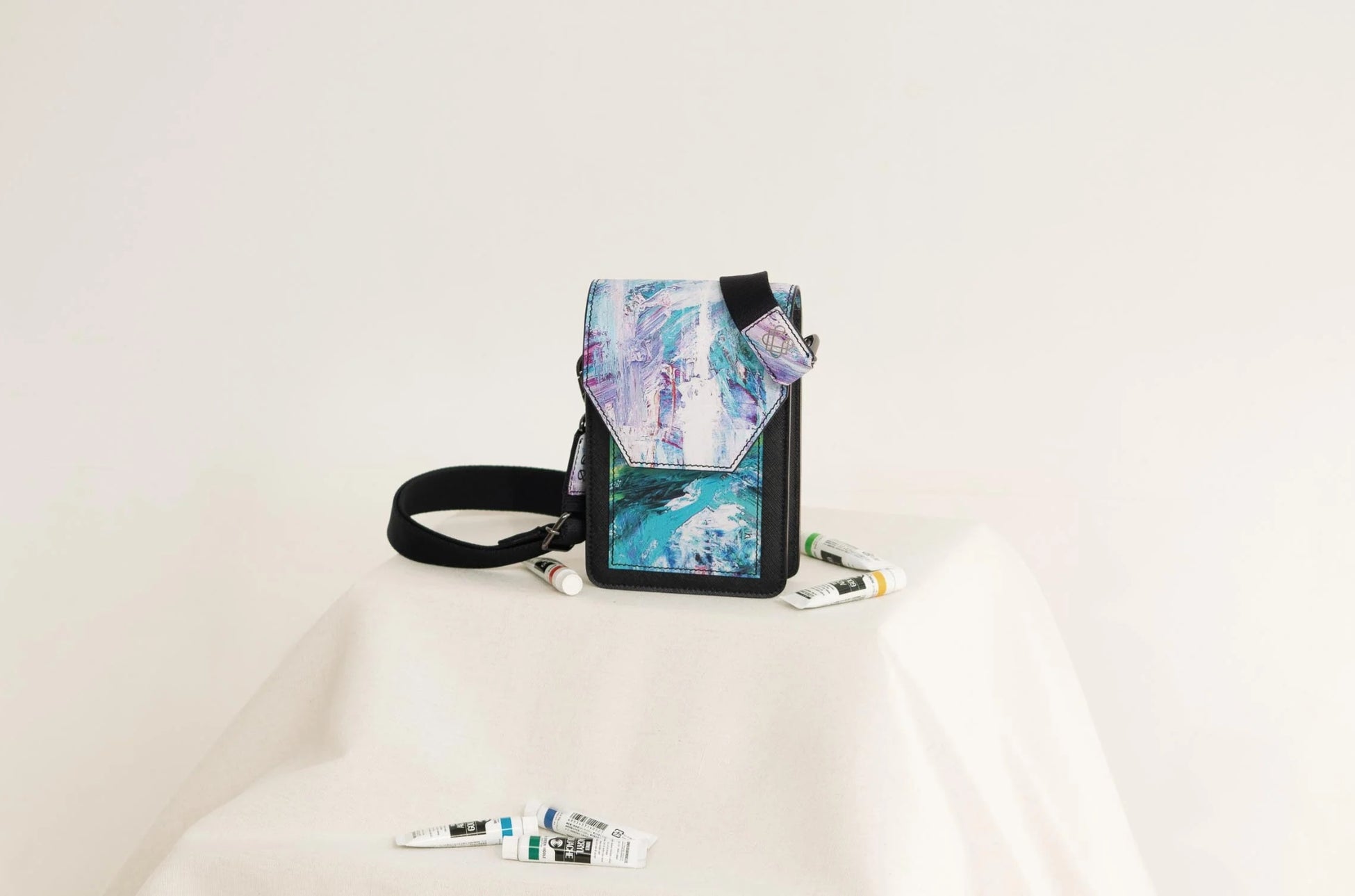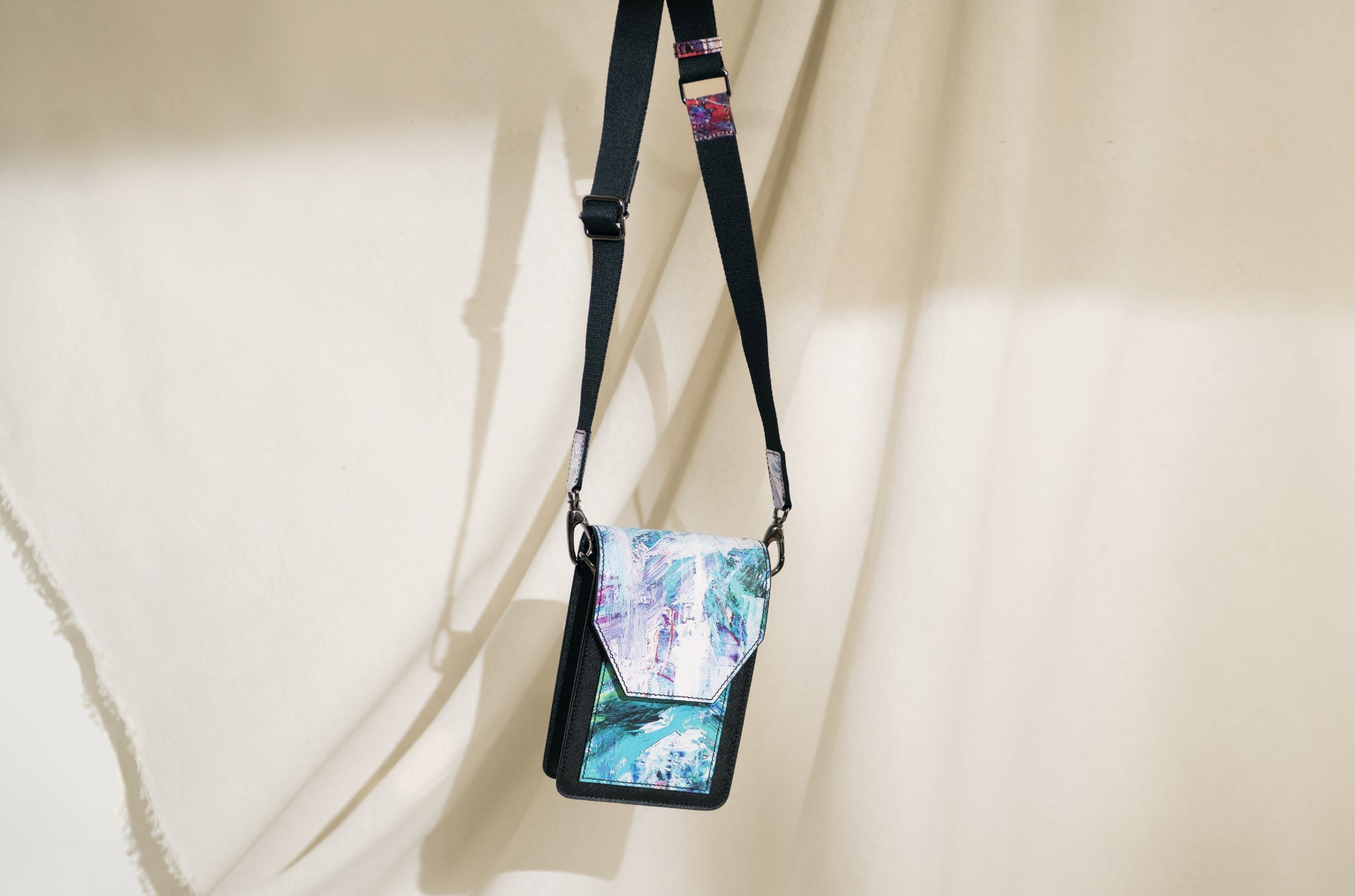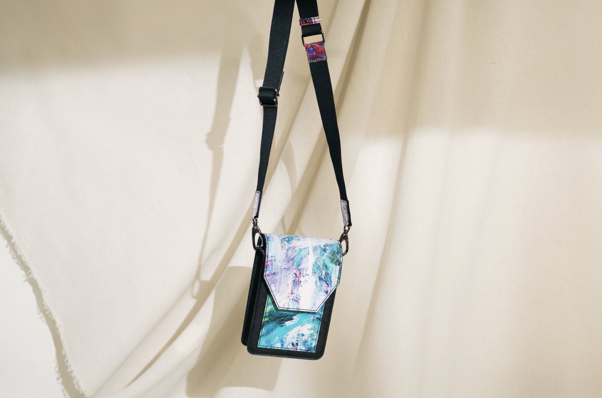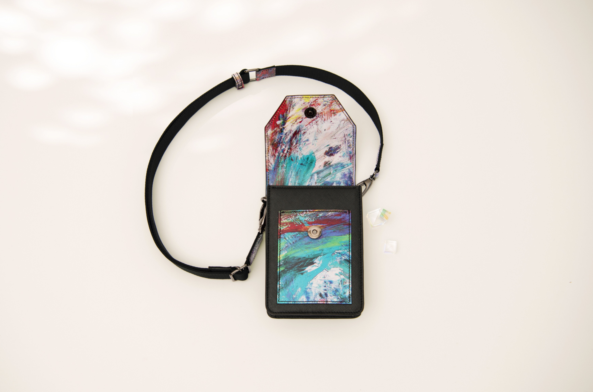 LGBTQの若者の自殺防止に取り組む団体TrevorProjectに売り上げの3%を寄付する『FUTURE PRISMコレクション』。今回、2023年新作として登場したのは”フラップ付き縦型ショルダーバッグ”。コンパクトでありながらも、箱型でサイドのマチをしっかり確保。収納力も安心なバッグは、夏の外出にも最適です。製品制作の過程で出る床革(廃材)を再利用し、革の表面には”分断ではなく共存”というメッセージを込めて描かれたグラフィックプリントがあしらわれています。