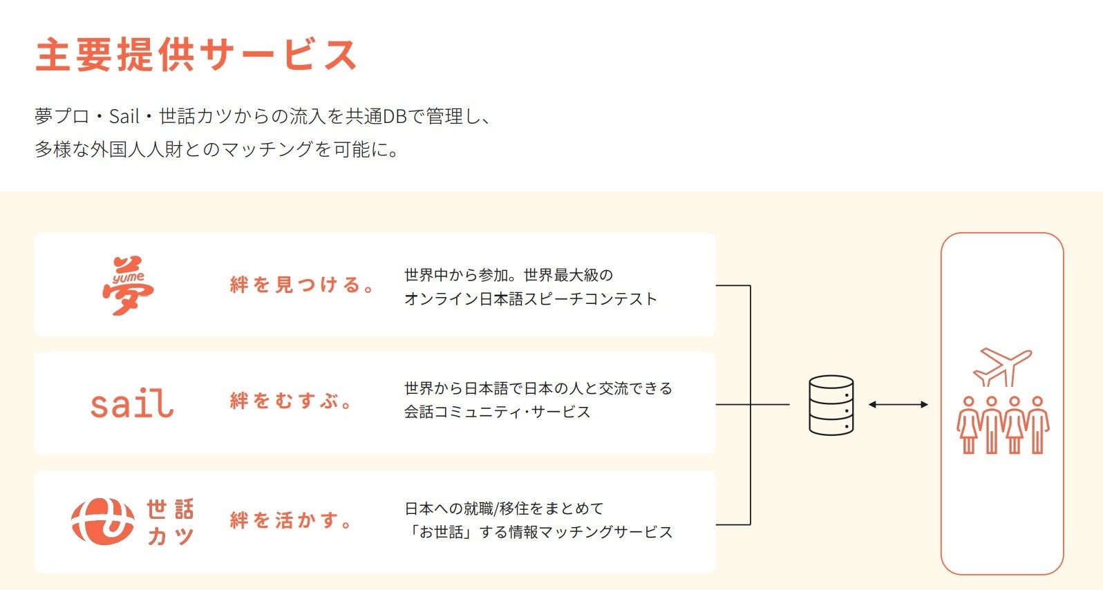 - 日本語での会話コミュニティ・サービス「Sail」を活用することで、日本での就職活動をよりスムースに、希望に沿った形で進められます。