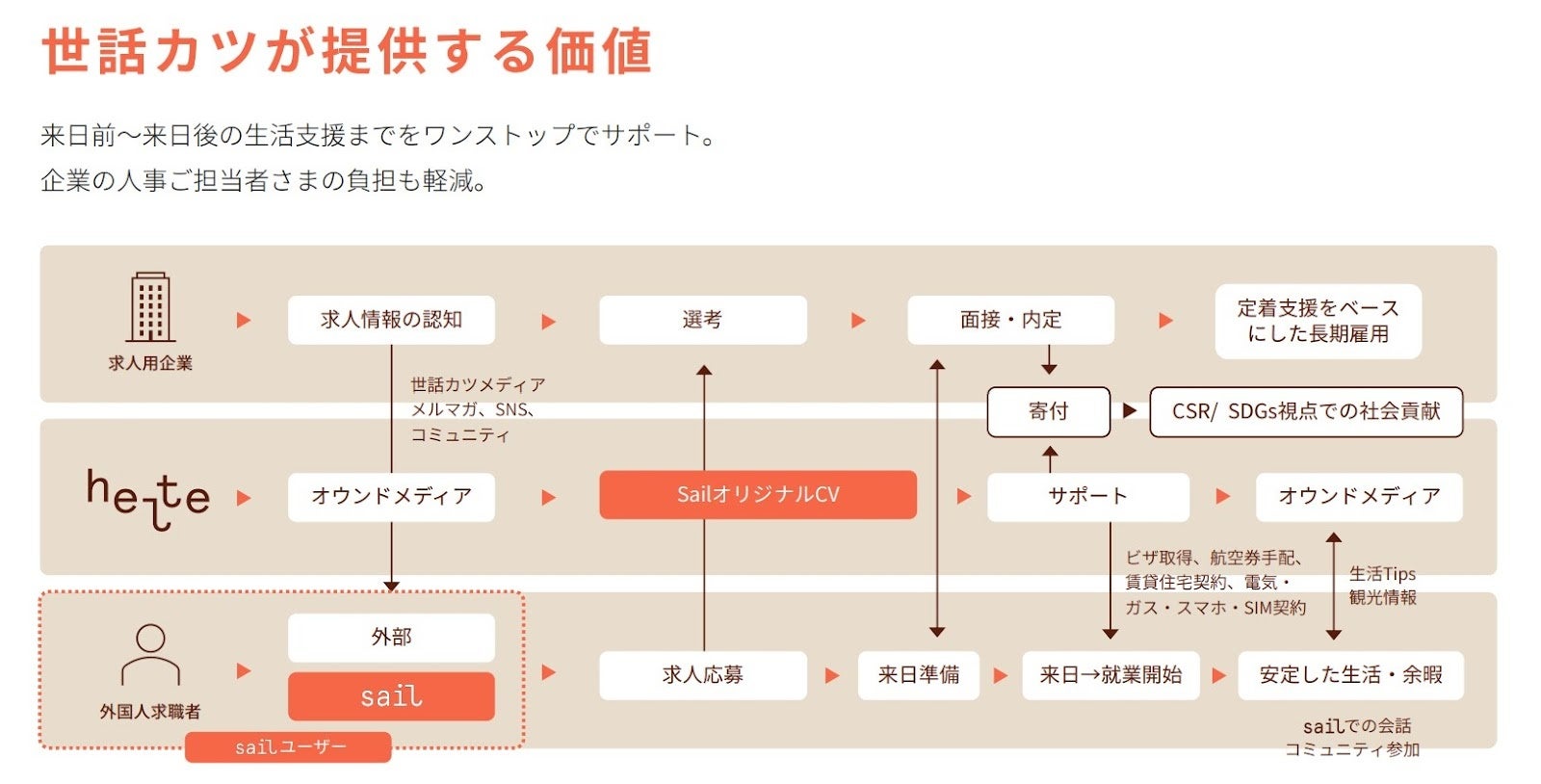 株式会社Helte(本社:千葉県柏市、代表:後藤学、以下「Helte」)は「世話カツ」を通じて、外国人財の雇用を検討している求人企業様と日本での就業を考えている求職者の皆さまへ向けて、ハイアリング(雇⽤)プラットフォームを展開していきます。