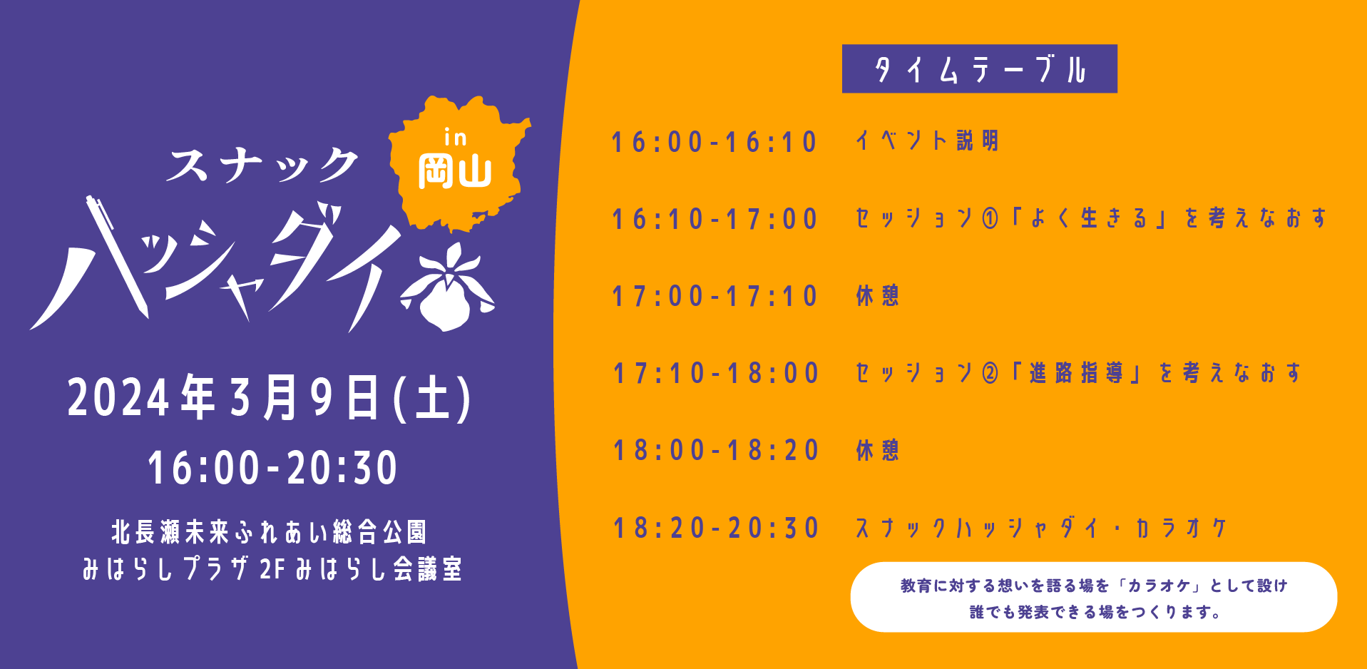 HASSYADAI social×ベネッセコーポレーション「スナックハッシャダイ in 岡山」を 3/9(土)に開催