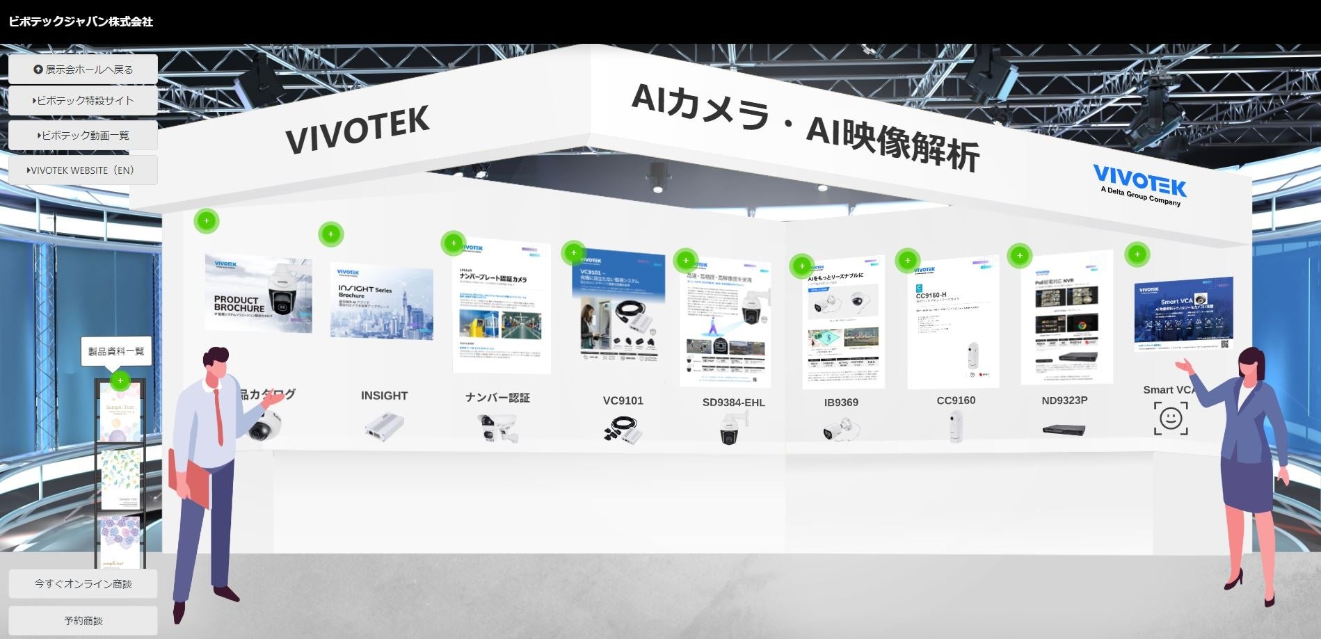 ビボテックの展示ブースをWEB上で再現した展示会です。 各製品の展示パネルをクリックすることで製品のスペック情報、動画のご視聴、カタログのダウンロード等がご利用いただけます。