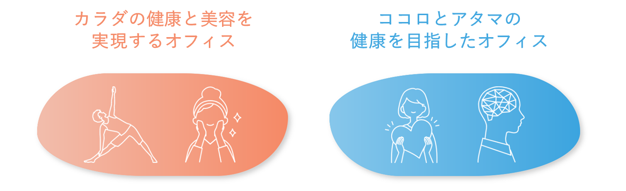 サブテーマ | ・カラダの健康と美容を実現するオフィス ・ココロとアタマの健康を目指したオフィス |