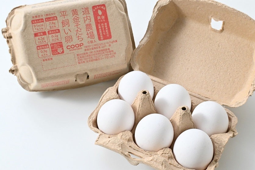 生活協同組合コープさっぽろ(以下、コープさっぽろ)では、北海道の農家を応援するため、2011年に道産飼料米を与えて生産する「黄金そだちたまご」の販売を開始しました。また、アニマルウェルフェアの観点から2017年より全店で平飼いたまごの取扱いをスタートしております。
