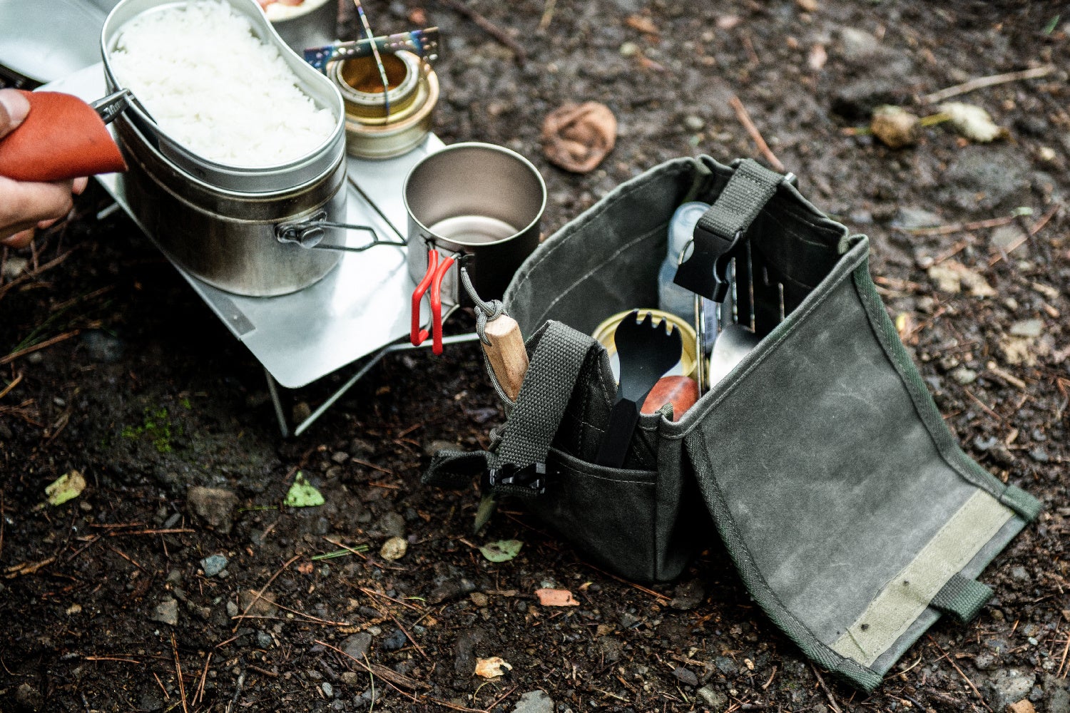 「戦闘飯盒2型にスタッキングしてキャンプ場へ持ってきたけど、取り出した道具はどこに置こう」