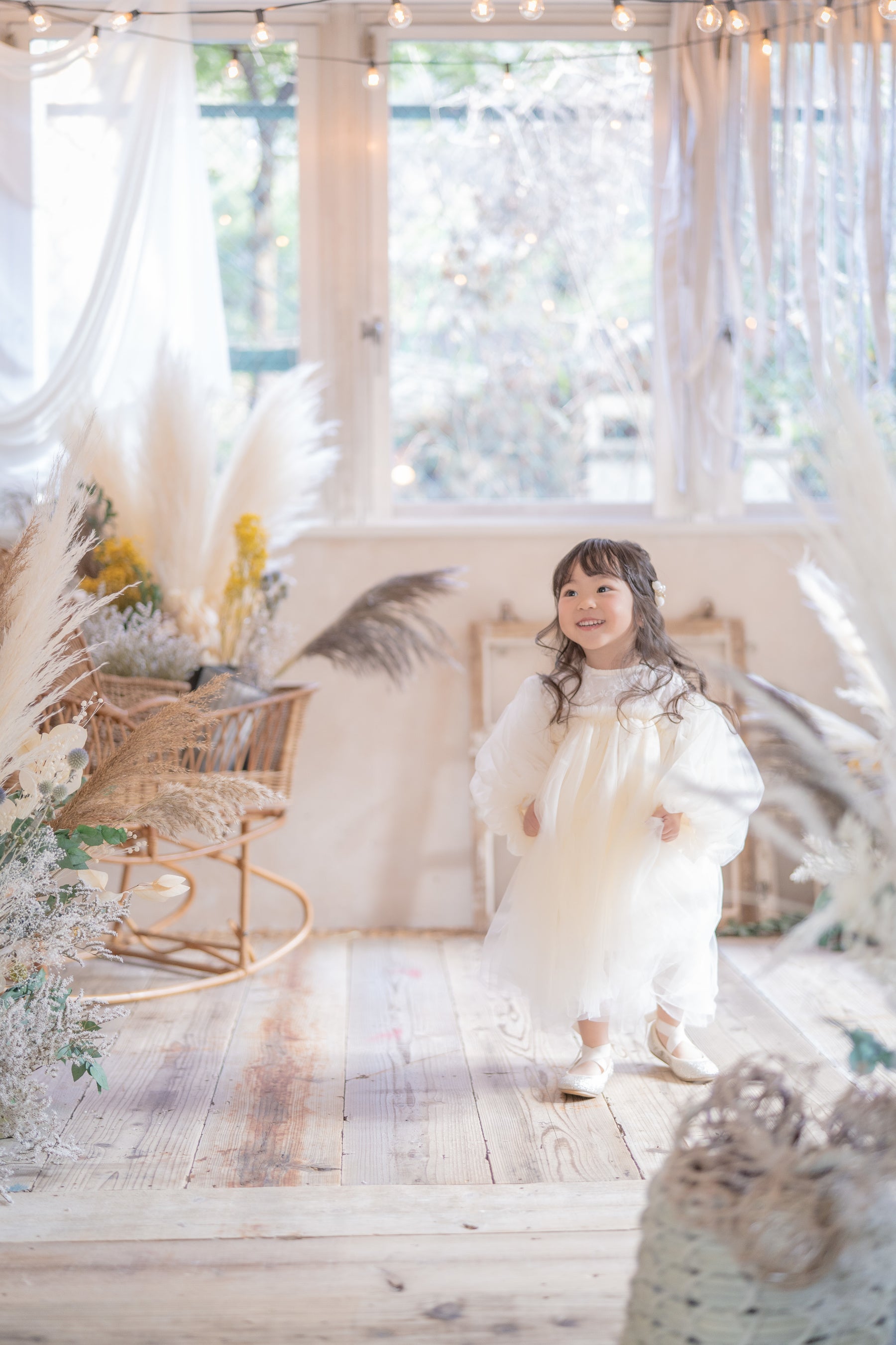 コフレでは色味を統一した独自の「ワントーンフォト(R)」※にこだわり、可愛らしく温かな雰囲気の中で、自然な笑顔を引き出すサポートをいたします。丹念につくりあげた空間で、大人も子どもも、こころおどる特別な撮影を体験していただけます。