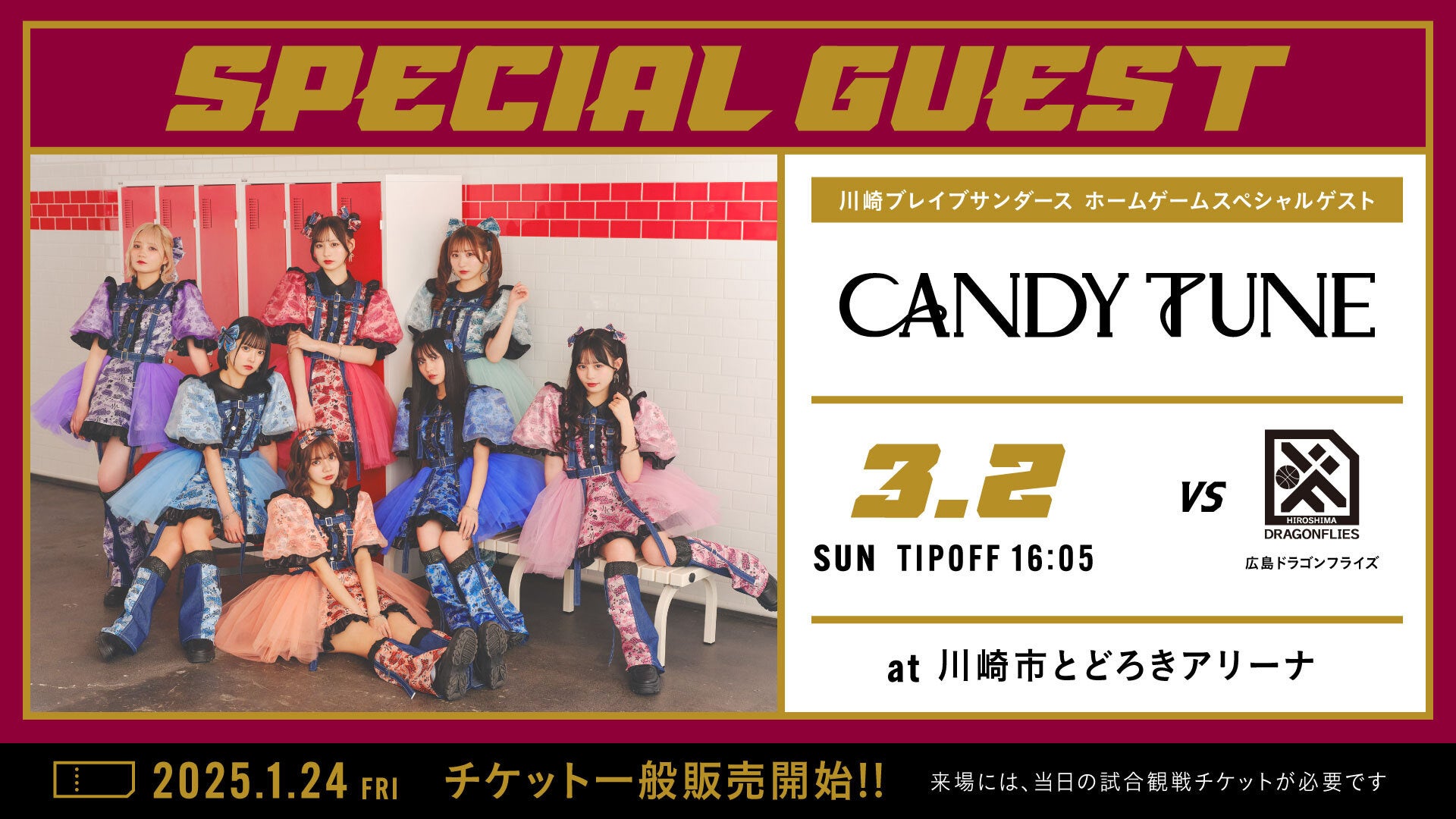 3月2日(日)川崎市とどろきアリーナにて開催されるBリーグ・川崎ブレイブサンダースのホームゲームに、「CANDY TUNE(キャンディーチューン)」の来場が決定しました。