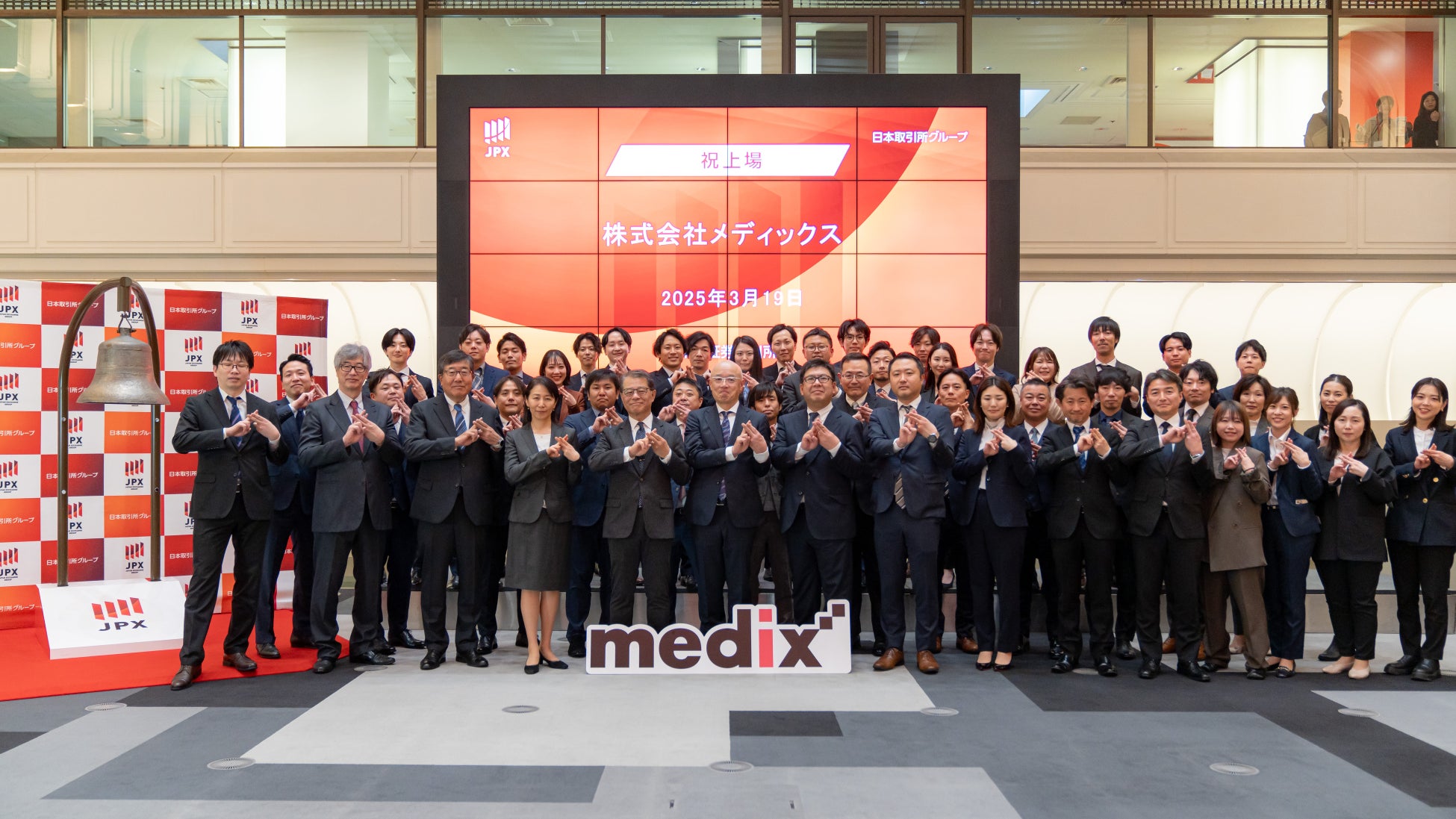 株式会社メディックス(本社:東京都千代田区、代表取締役:田中正則、以下メディックス)は、2025年3月19日、東京証券取引所スタンダード市場(証券コード:331A)へ新規上場いたしました。ここに謹んでご報告申し上げますとともに、当社をご利用いただいているお取引先様をはじめ、創業以来私たちを支えてくださったすべての方々のご支援、ご高配に心より感謝を申し上げます。