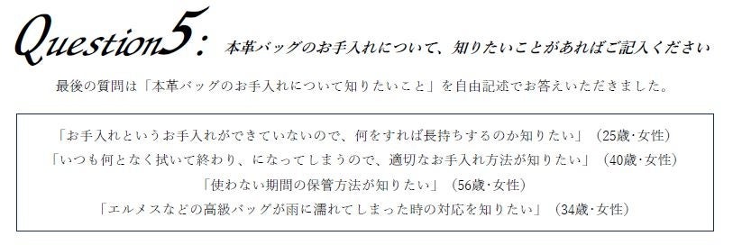 Question5:本革バッグのお手入れについて、知りたいことがあればご記入ください