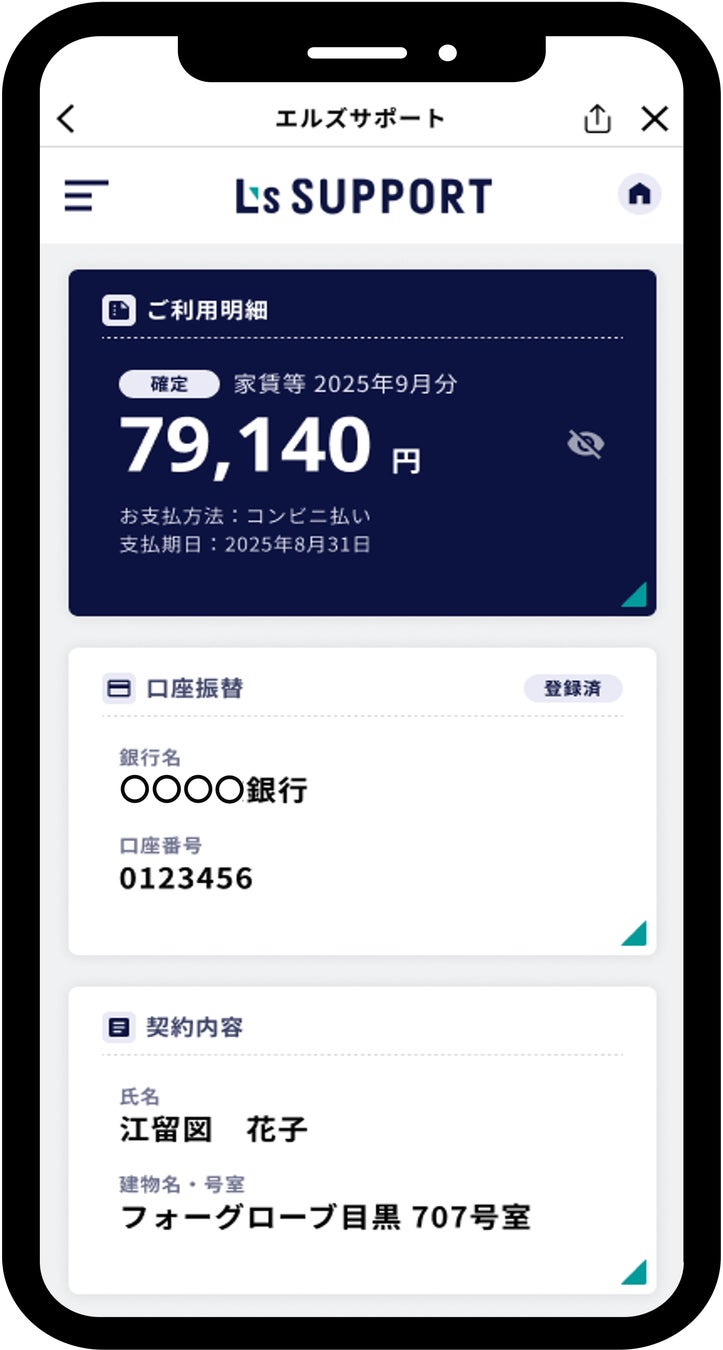 賃借人がスマートフォンから支払予定日や利用明細をいつでも確認可能