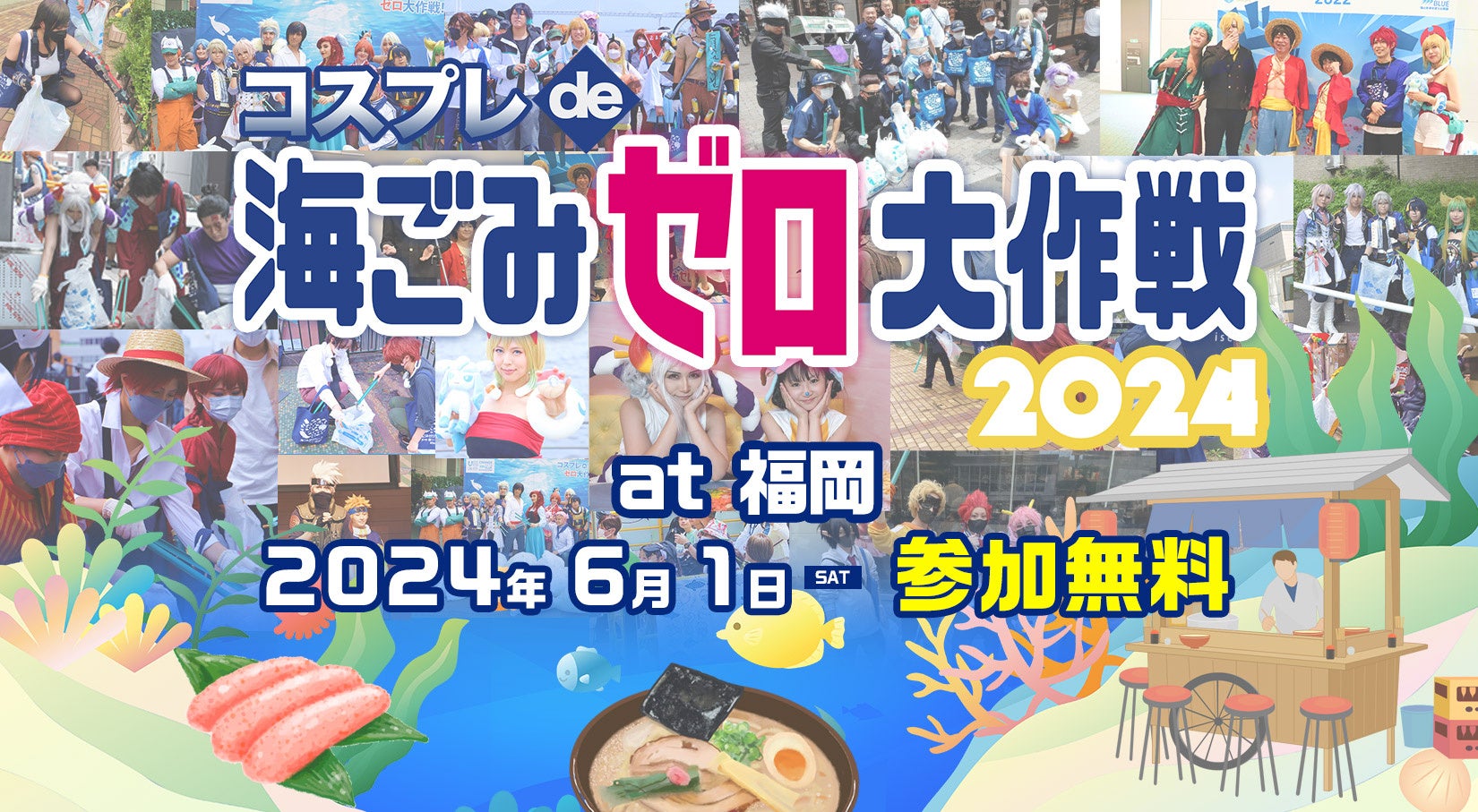 「コスプレde海ごみゼロ大作戦2024春」参加募集開始!!日時:2024年6月1日(土) 11:00〜16:30(更衣室9:00オープン)場所:キャナルシティ博多周辺