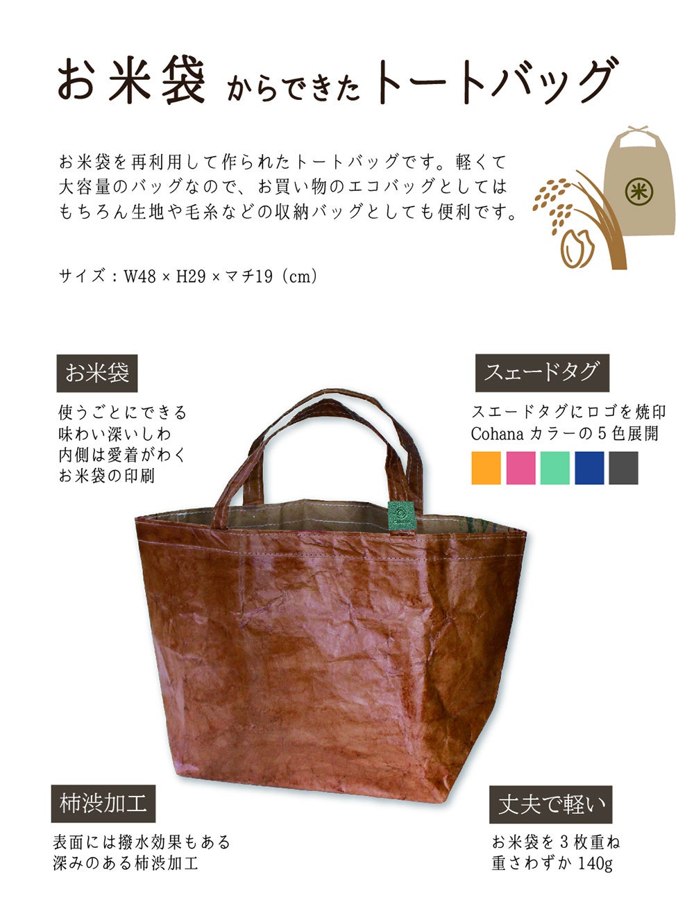 期間内にオンラインストアにて商品をご購入(税込:11,000円以上)のお客様の中から厳正なる抽選の上、毎日3名様に「お米袋からできたトートバック」をプレゼント。