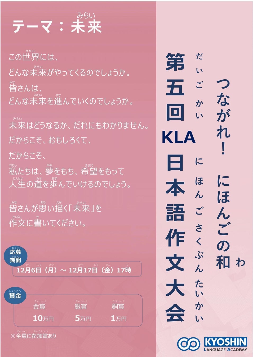 京進グループが運営する日本語学校 京進ランゲージアカデミー(以下KLA)が開催した作文大会の今年度の受賞者が2月10日(木)に決定しました。