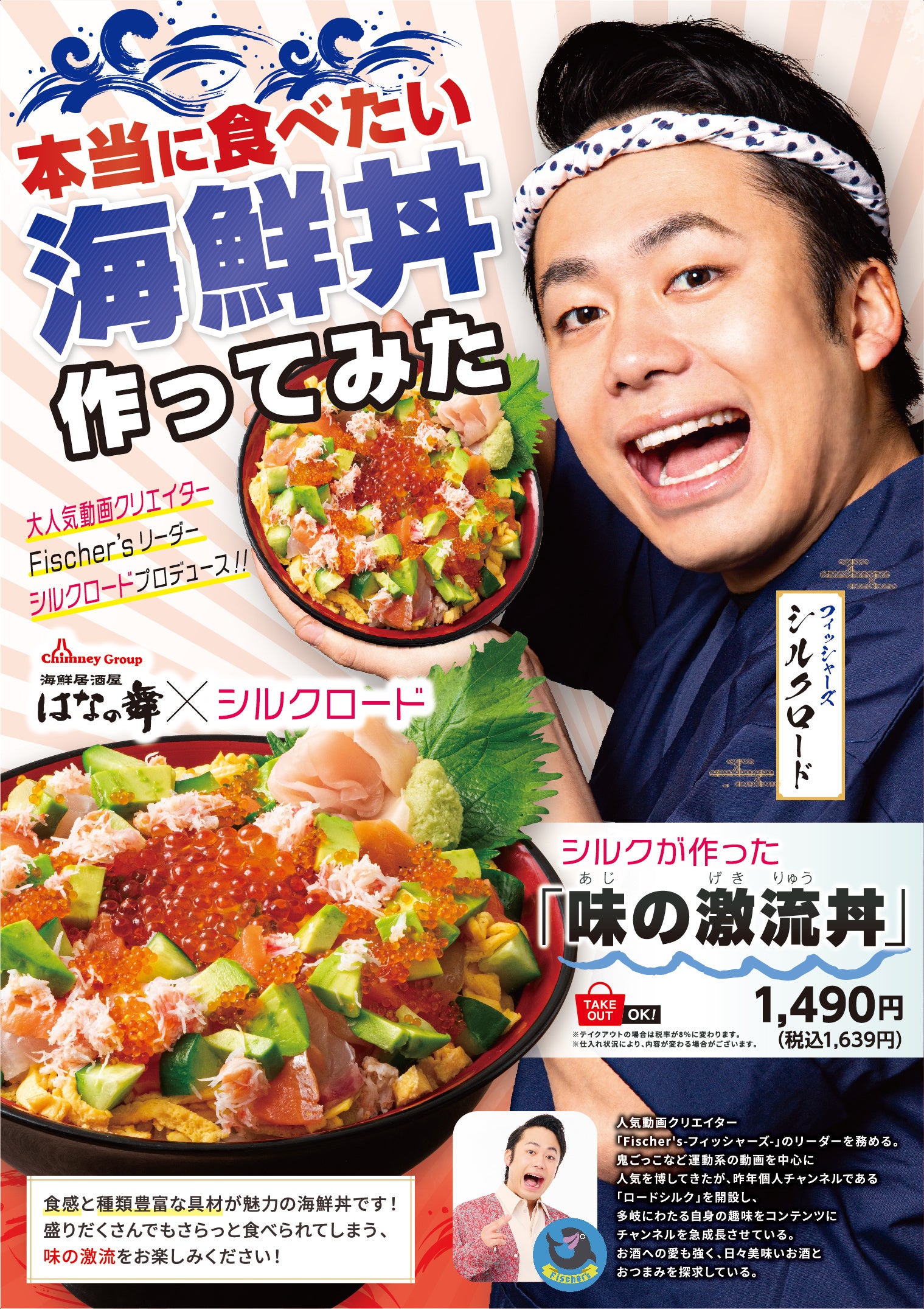 海鮮居酒屋「はなの舞(https://www.chimney.co.jp/eatery/brand.html?brand_code=hana )」「さかなや道場(https://www.chimney.co.jp/eatery/brand.html?brand_code=sakana)」等を全国展開するチムニー株式会社(本社:東京都墨田区 代表取締役社長:茨田篤司)は、大人気動画クリエイターグループ フィッシャーズのリーダーであるシルクロードさんとのコラボレーションを実施いたします