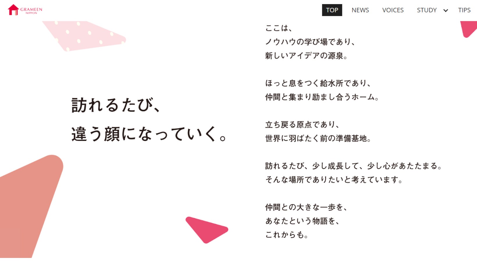 グラミン日本をホームだと思うことができるようなサイトでありたいと考えています。