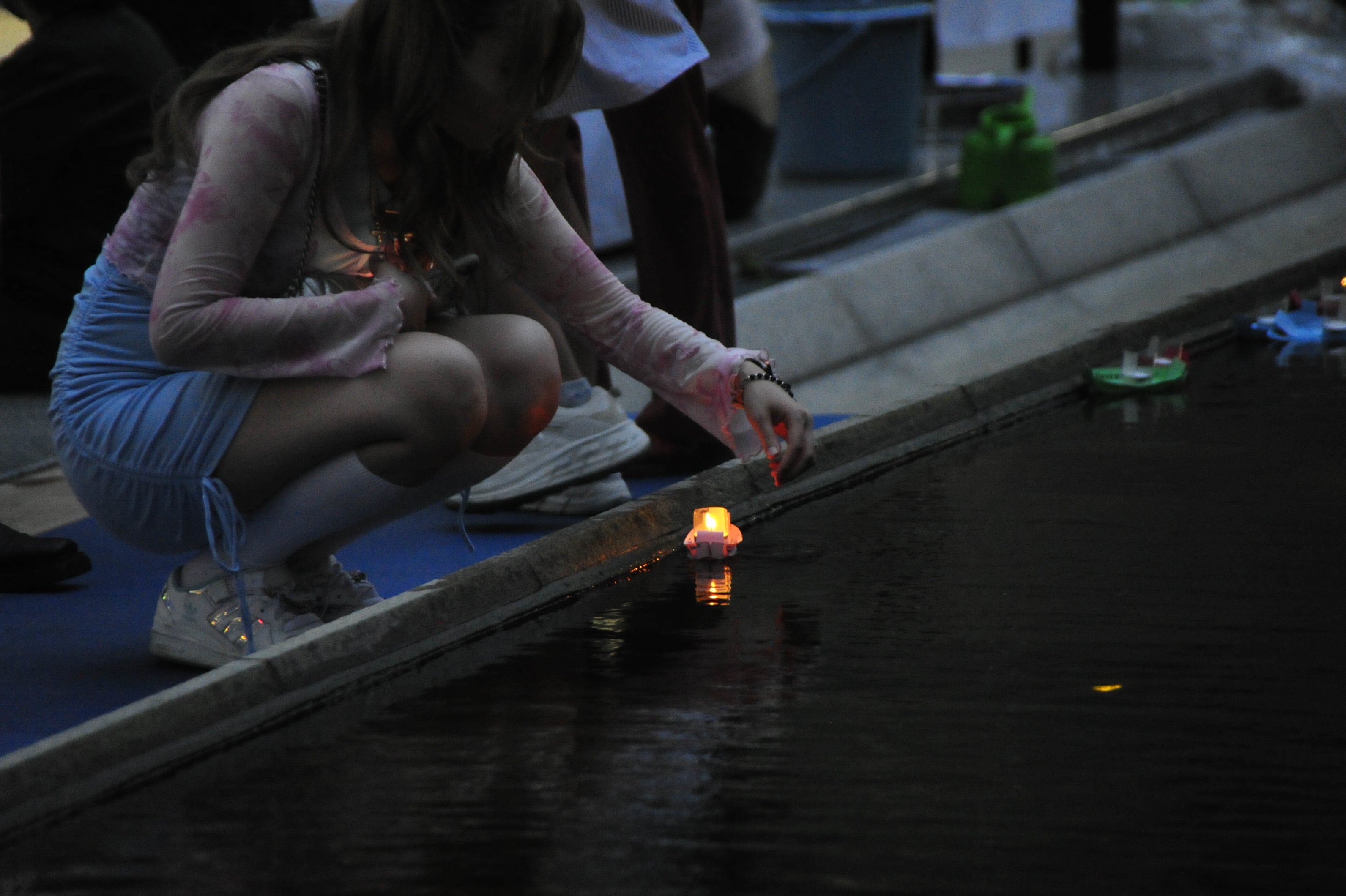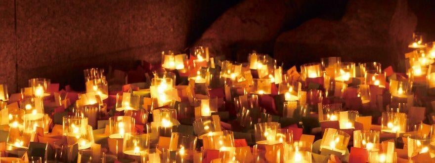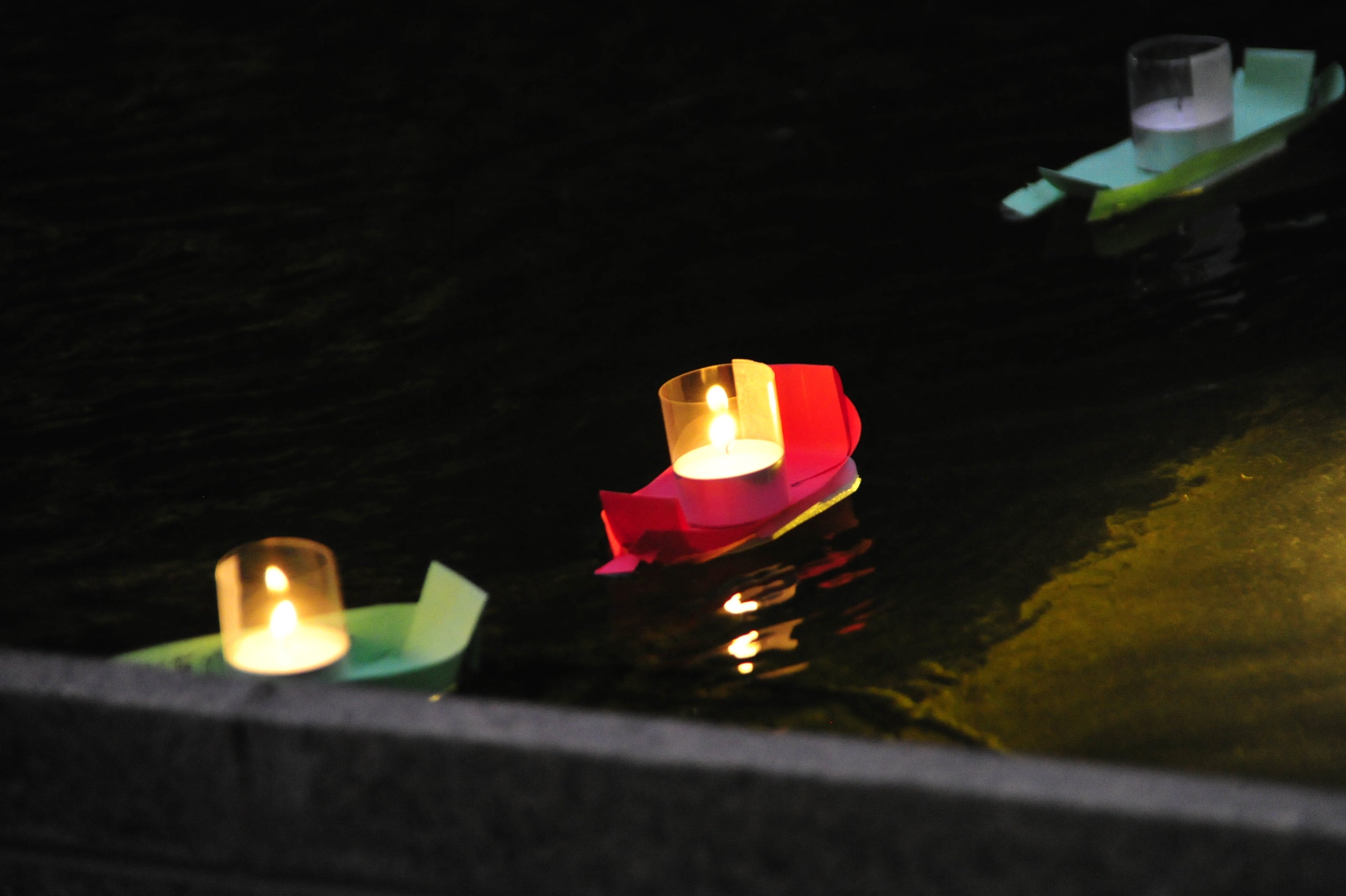 ろうそくを灯して想いを込めて池に浮かべてください。