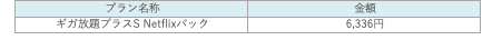 本料金プランは、月額6,336円でご利用いただくことができ、「ギガ放題プラスS」(通常4,950円/月)と、「Netflix(スタンダード)」(通常1,490円/月)を、それぞれ個別にご契約いただくよりおトクになります。