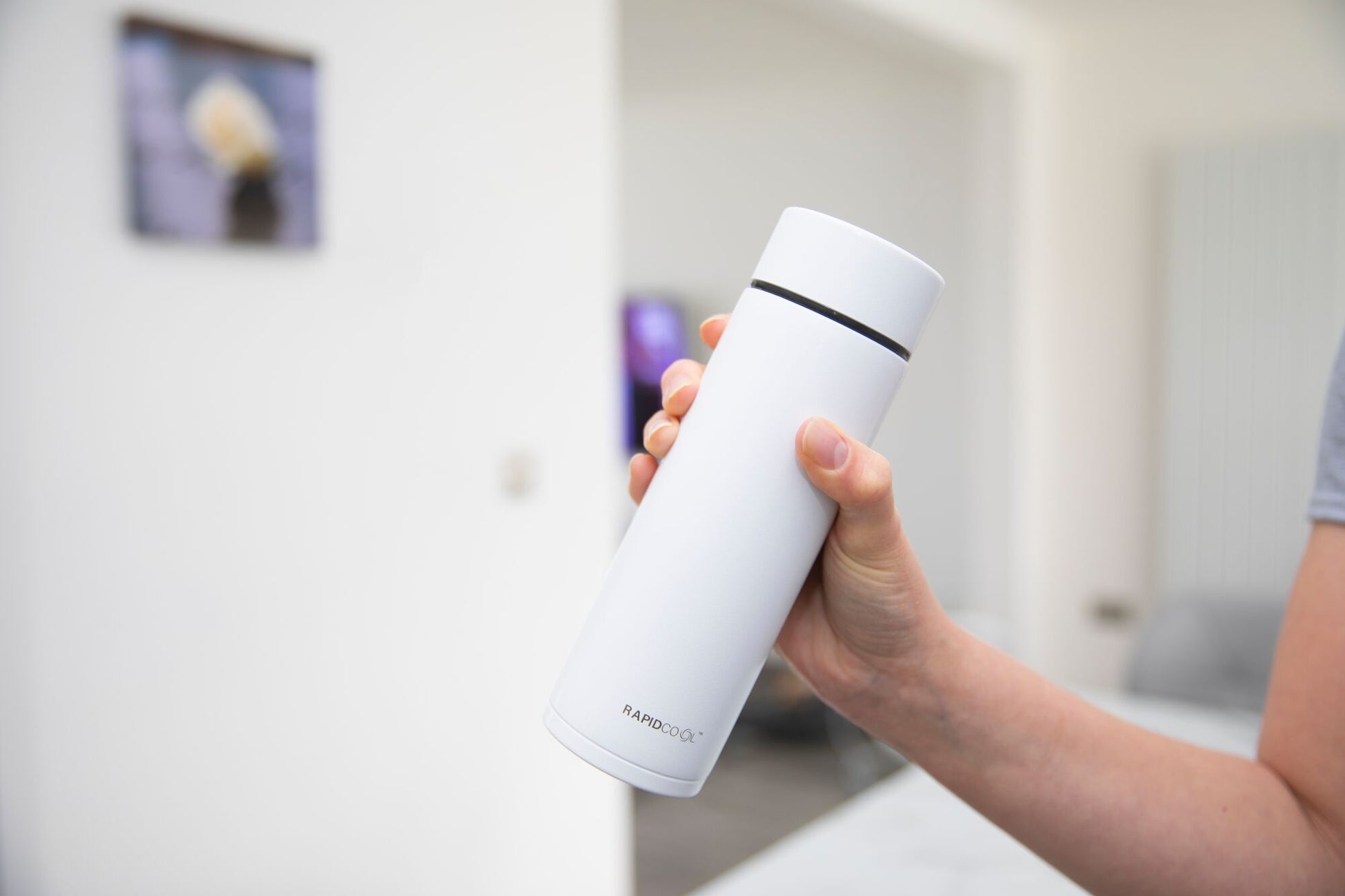 「ラピッドクール(RapidCool TM)」 は、業界初の電気を必要としない調温・調乳ステンレスボトルとなっており、沸騰したお湯を授乳に適した温度(約40℃程度)に2〜5分で冷まします。