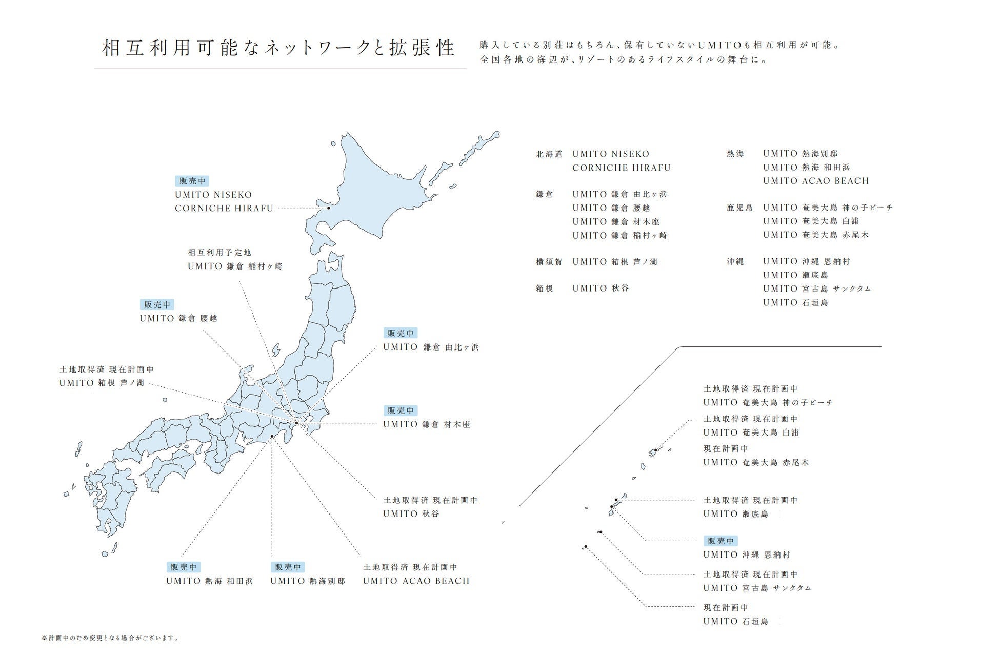 UMITOは、海と共に過ごす贅沢な時間を提案するシェア購入型の別邸シリーズです。2021年に販売を開始して以来、沖縄恩納村、鎌倉腰越、鎌倉材木座、熱海別邸、熱海和田浜など、海を最前列で感じられるラグジュアリーホテルとしても利用可能な物件を次々と展開しています。