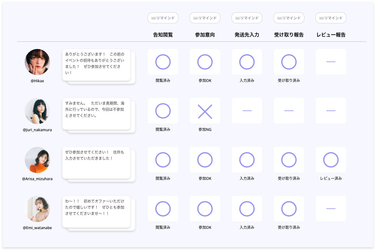 特定の行動を取った顧客にだけ、限定のメッセージ送信や招待制イベントの案内、試供品提供などのアクションや分析を効率的に行うことができます。※一部機能は現在開発中