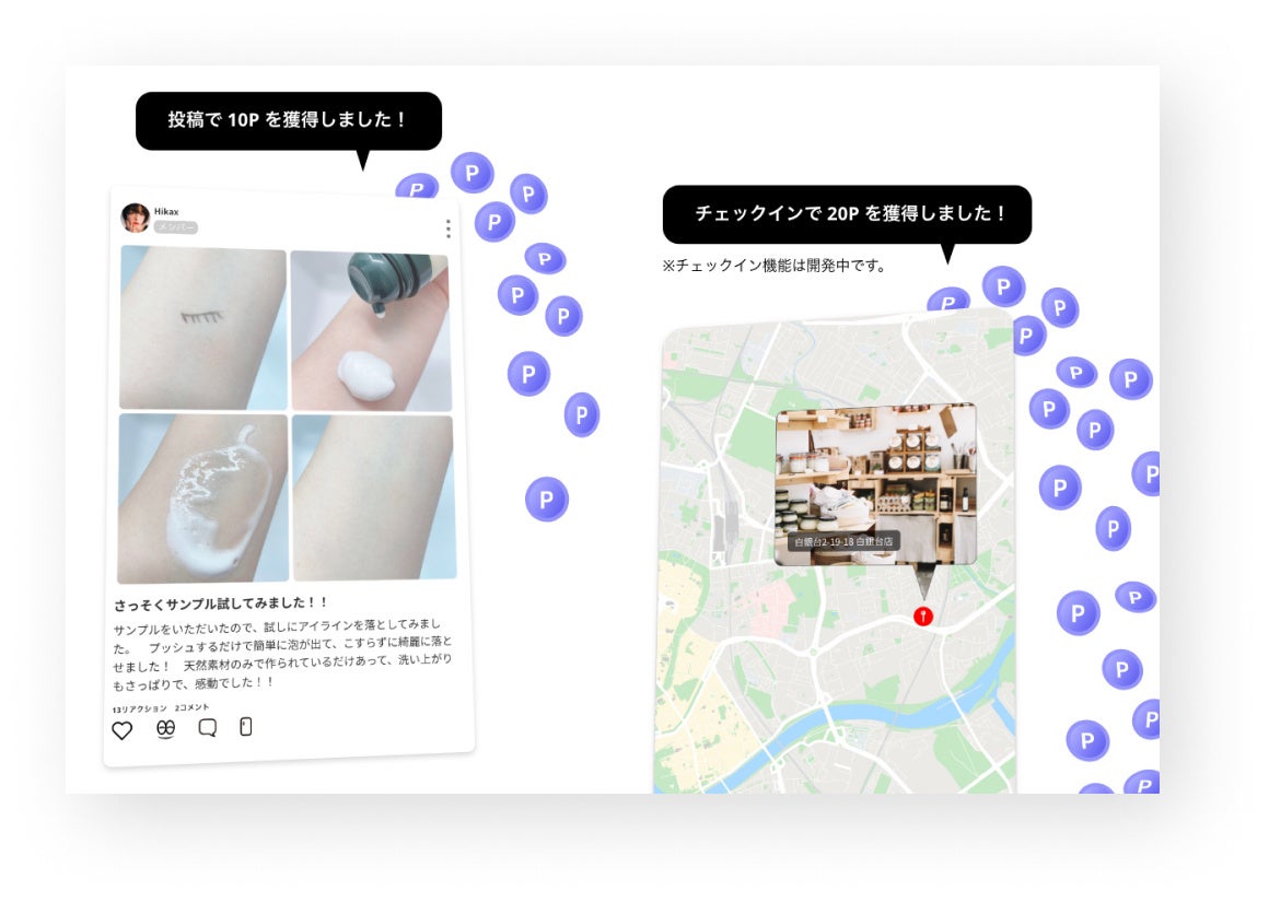 ポイント設計を利用して、SNS投稿やクチコミ投稿、購買を促進することが可能です。