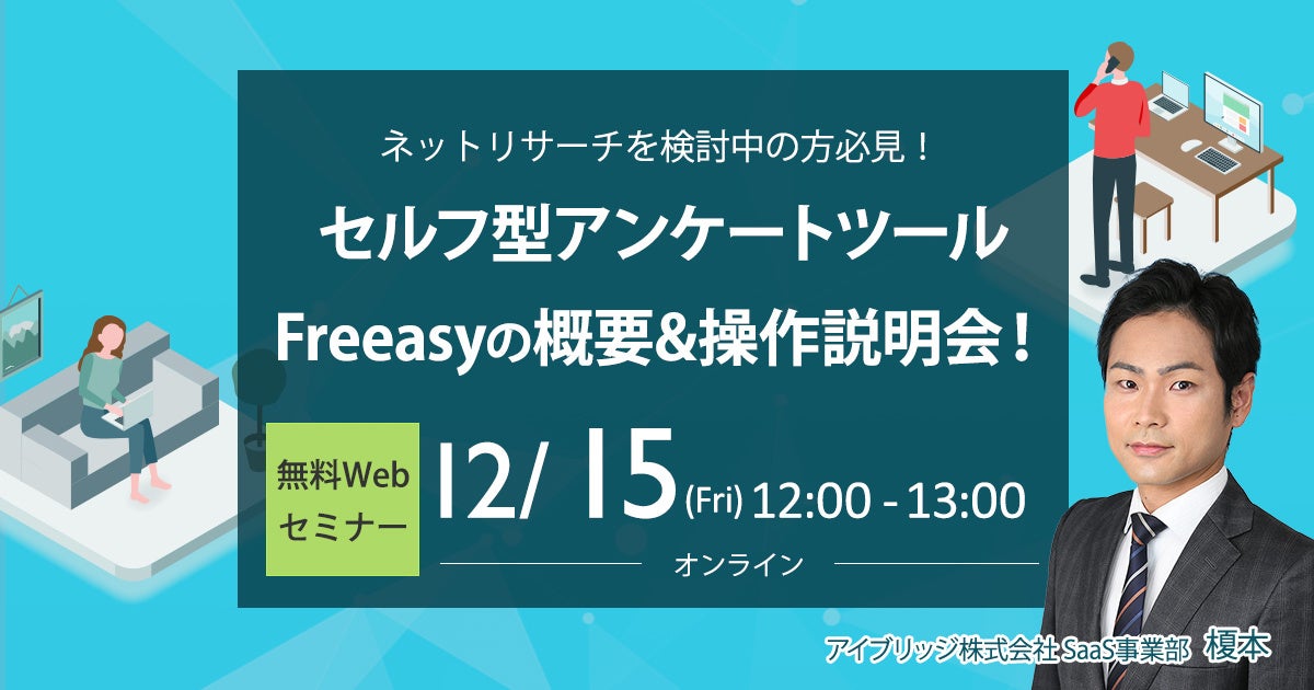 低コスト&回収スピードが好評!【無料オンラインセミナー 12月15日(金)12時~】セルフ型アンケートツールFreeasyの概要&操作説明会
