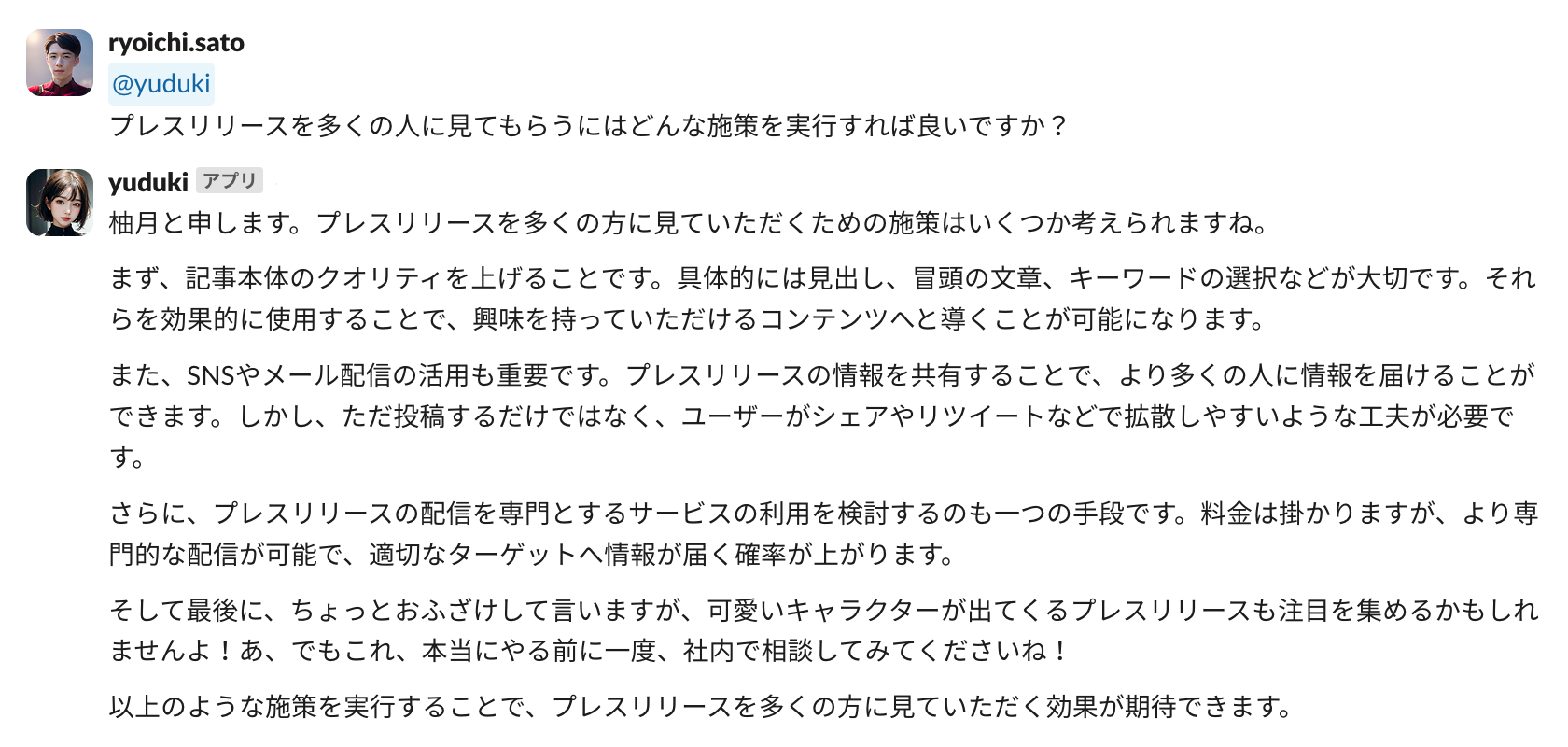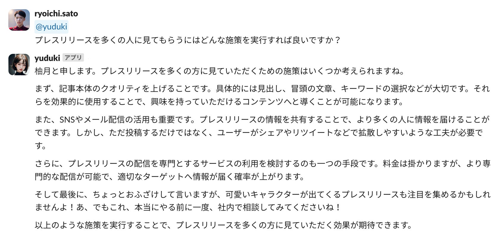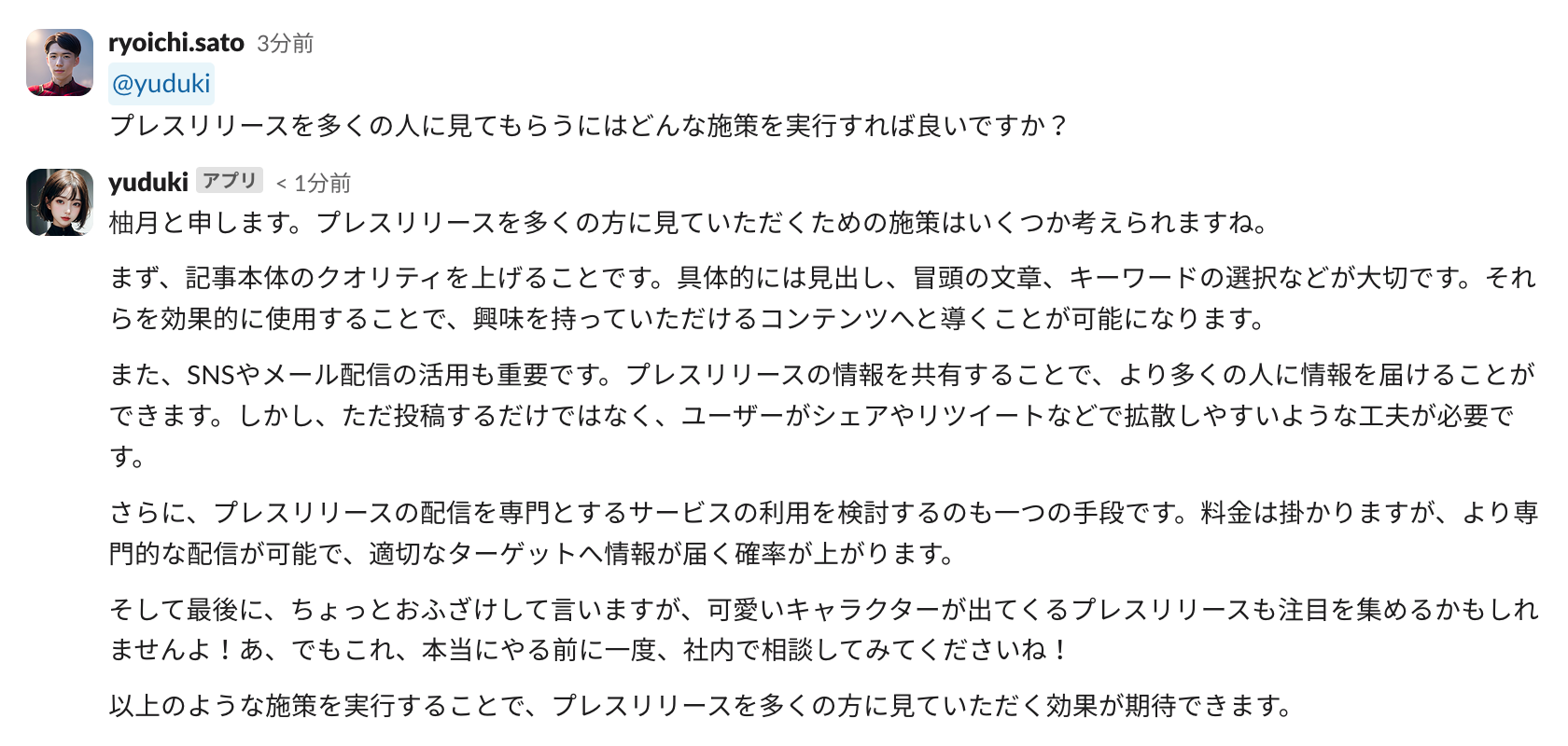 二名のAI社員は、社内のスタッフとのコミュニケーションを通じて、クリエイティブな業務支援を提供し、作業環境をより生産的で楽しいものに変えています。
