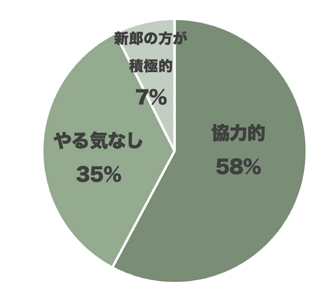 彼が「積極的に準備に協力してくれるか?」という質問に対して、結果は65%の方が「積極的」または「協力的」という結果となった。