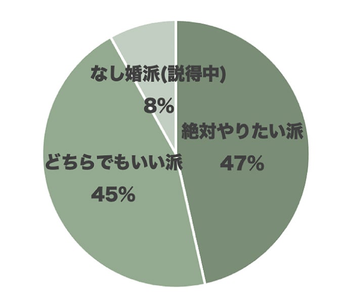 特に、8%の「なし婚派」というプレ花嫁さまは現在進行系で彼に説得をしているようだ。