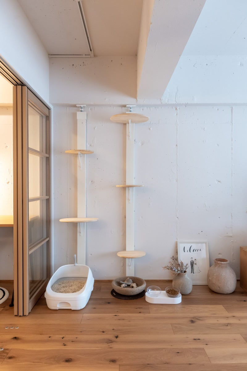 猫を迎えるまでは棚として使用し、猫を迎えた後は棚板の高さを調整してキャットウォークとすることができます。