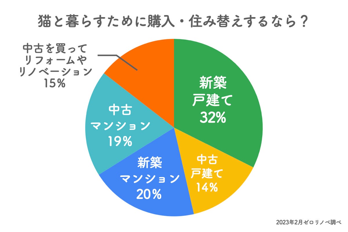 ■猫と暮らすために購入・住み替えしたいのは「新築戸建て」が最多。