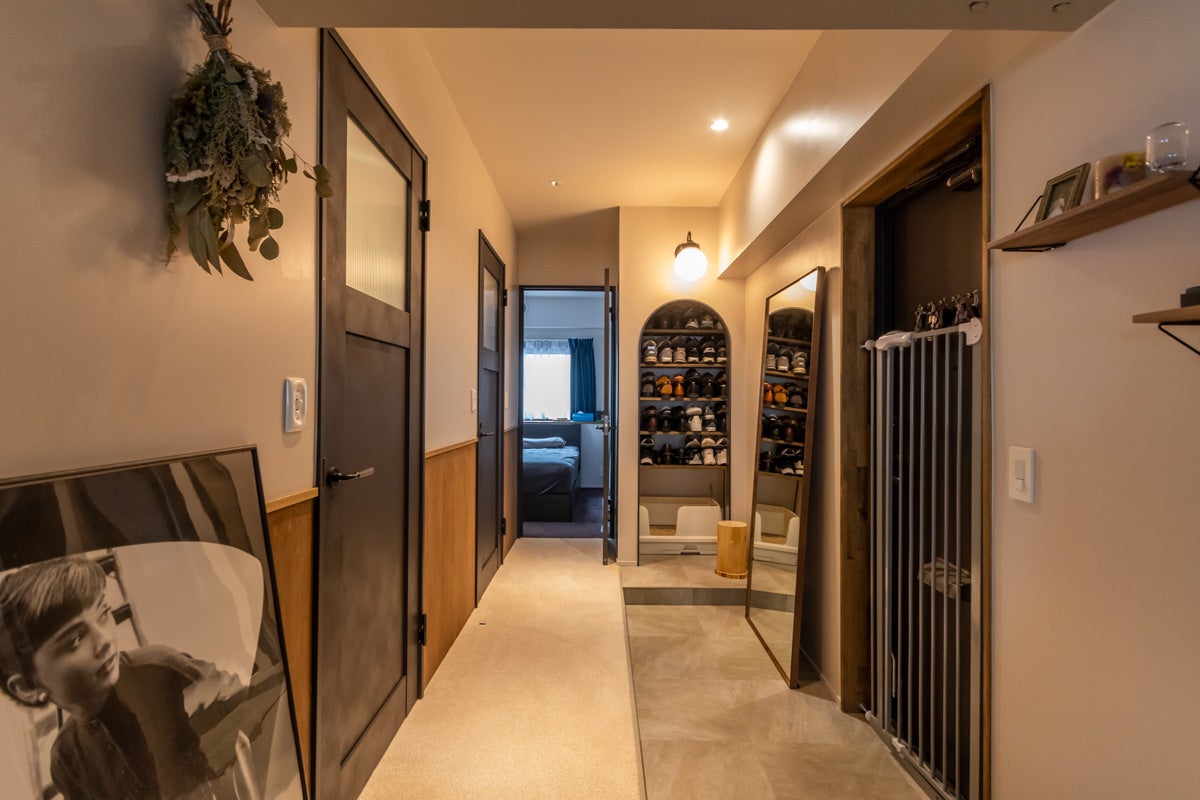 アウトドアグッズやスーツケース、ベビーカーなどの収納に便利な広い土間玄関は、ペットグッズを置くのにも重宝します。