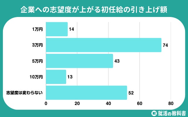 企業への志望度が上がると感じる初任給の引き上げ額は?