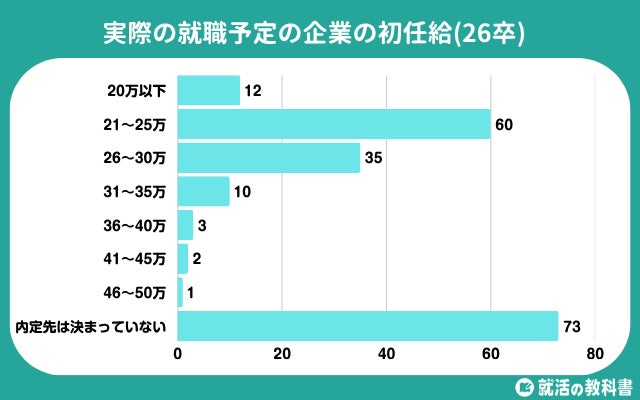 1、就活生の理想の初任給は26〜30万円。ただ現実は21〜25万円