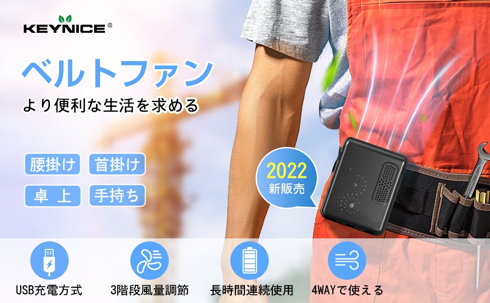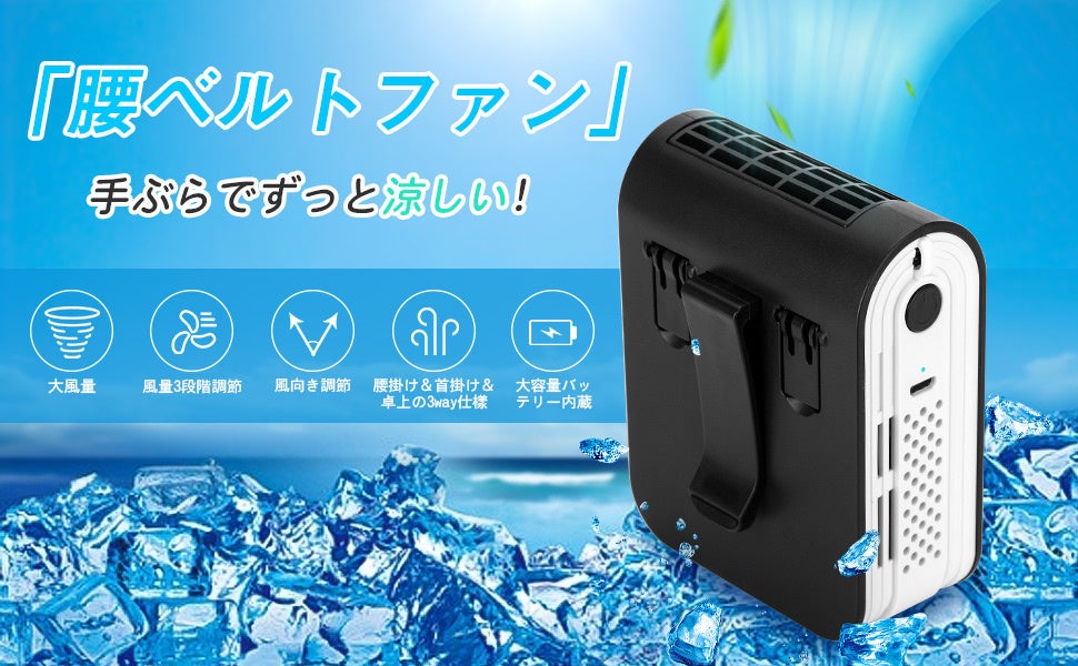 ベルトに装着できるUSB充電ベルトファン!ファンから取り入れた空気を身体と服の間に流して、涼しく快適な環境にします 。体のクリップ部分をズボンのベルトに引っ掛けるだけ!作業服はもちろん、私服でも使用できます。