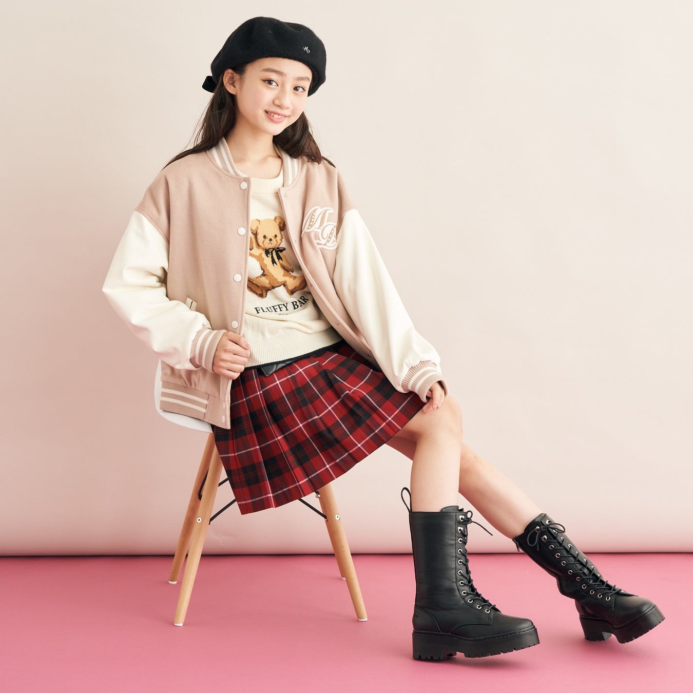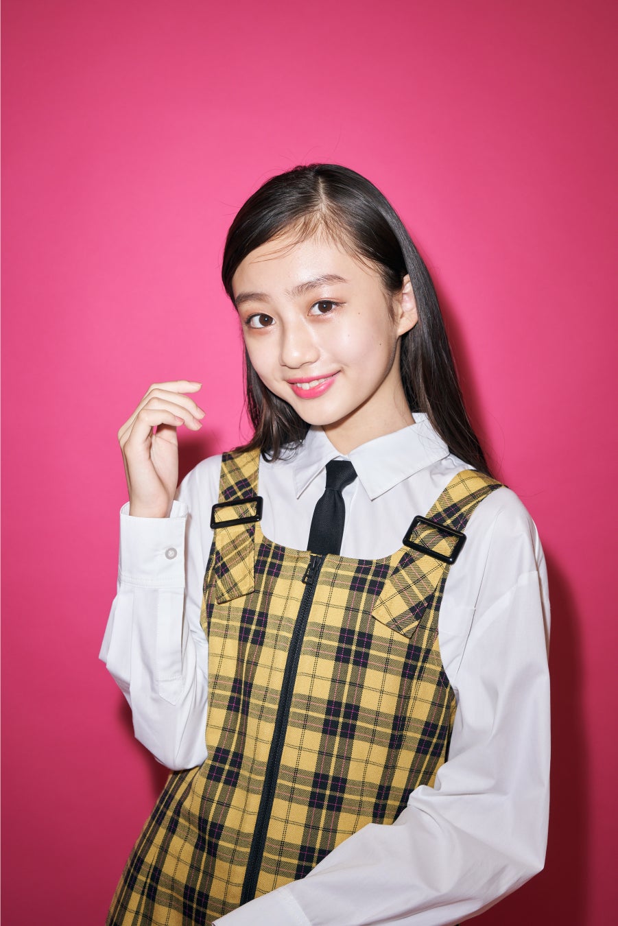 チェックのジャンパースカートと合わせてK-POPガールズ風スタイルに。