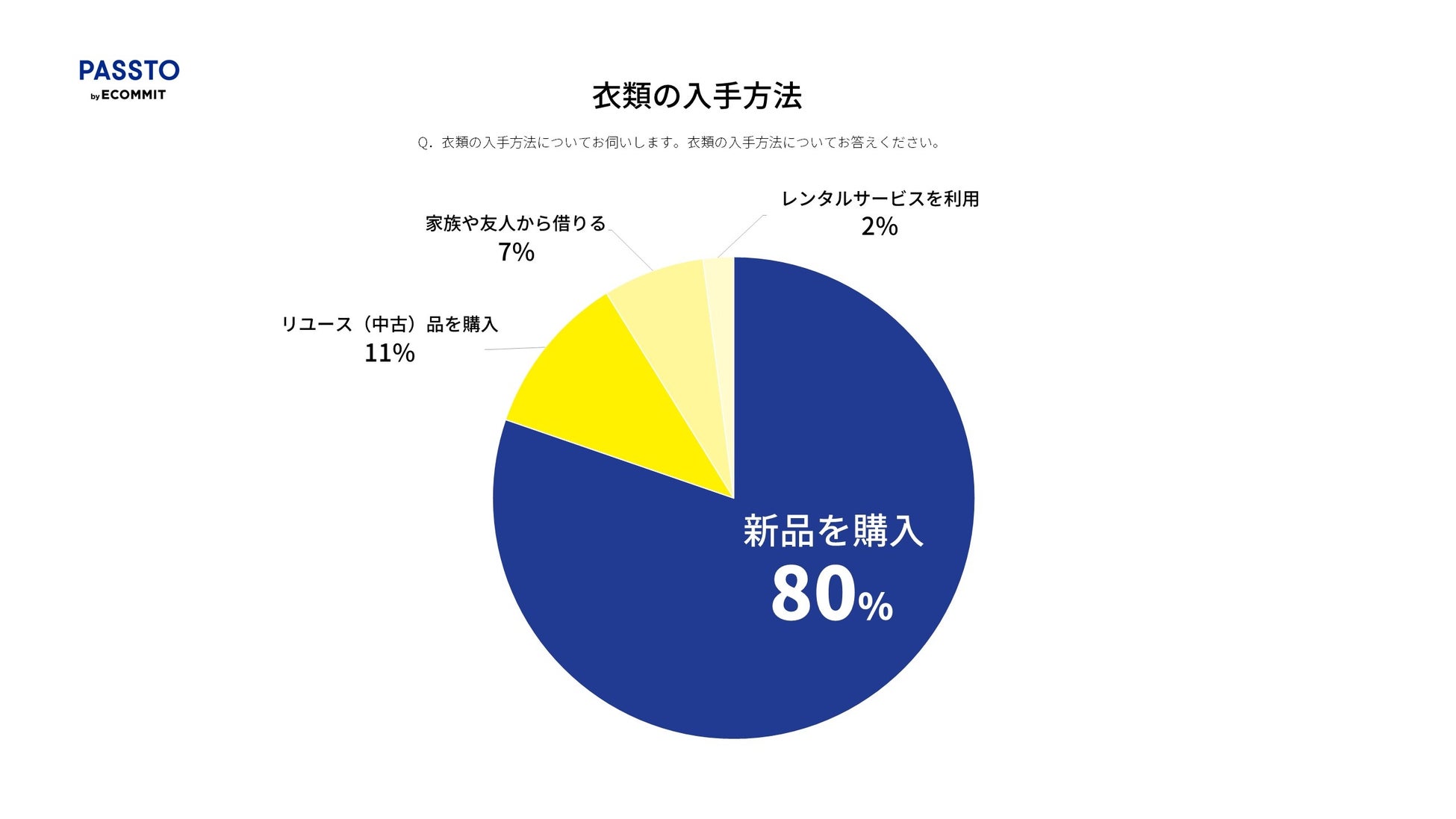 また、本調査の回答者は衣服の入手手段として80%が新品で購入すると回答しました。