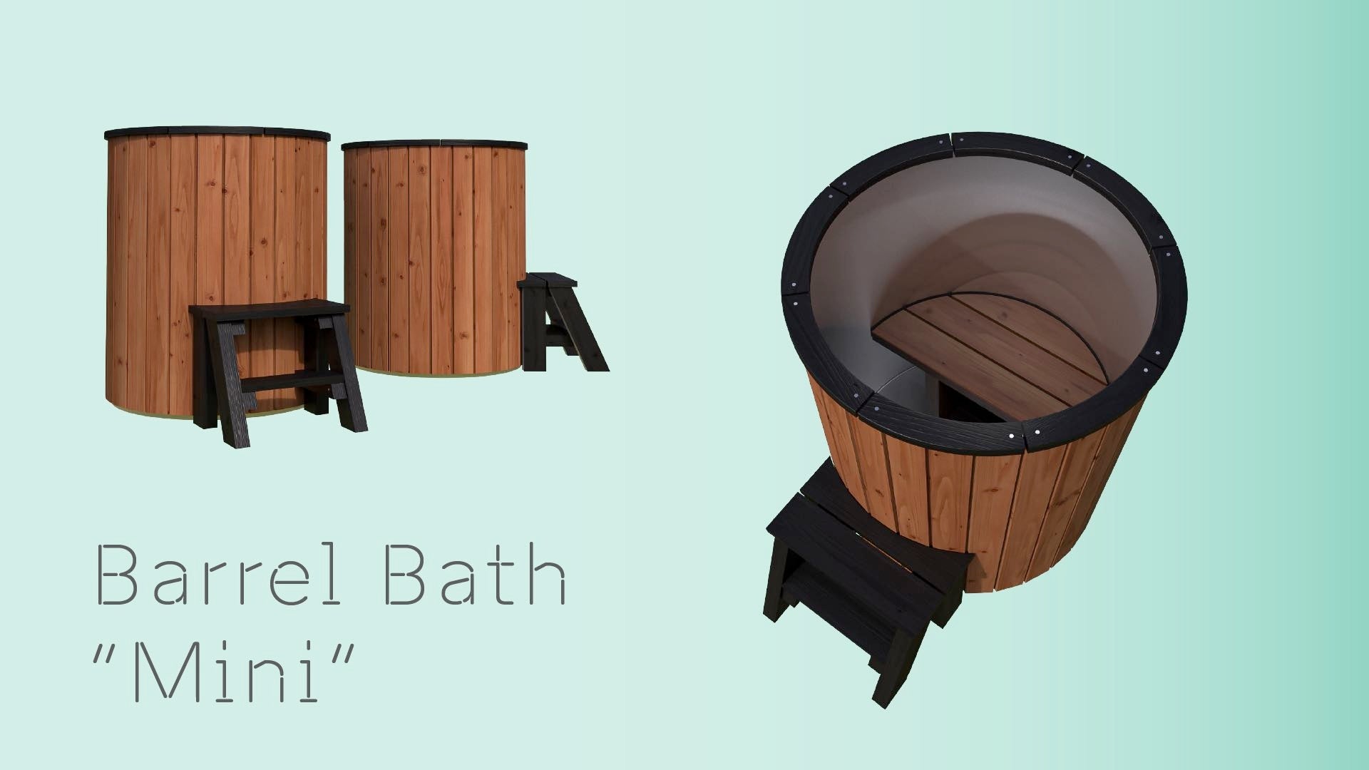 今回、水風呂用途に最適な一人用バレルバス『Mini』も新たに販売開始します。