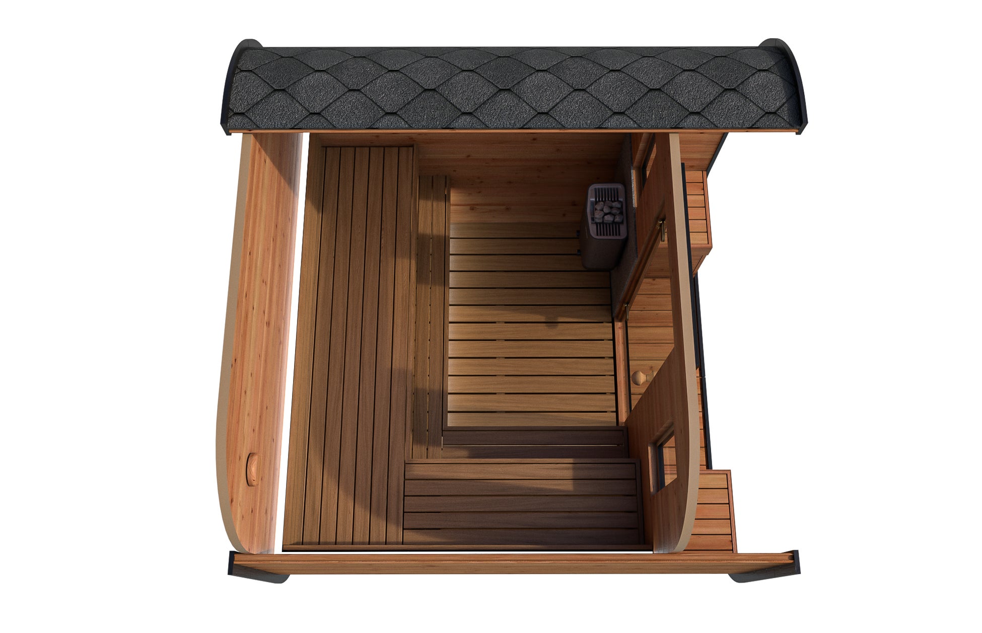 今回販売するスクエアバレルサウナは、バレルサウナのデザイン性やメリットを踏襲しつつ、北欧の伝統的なサウナに近い温浴体験ができるバレルサウナの『次世代モデル』とも言える機能を有しています。