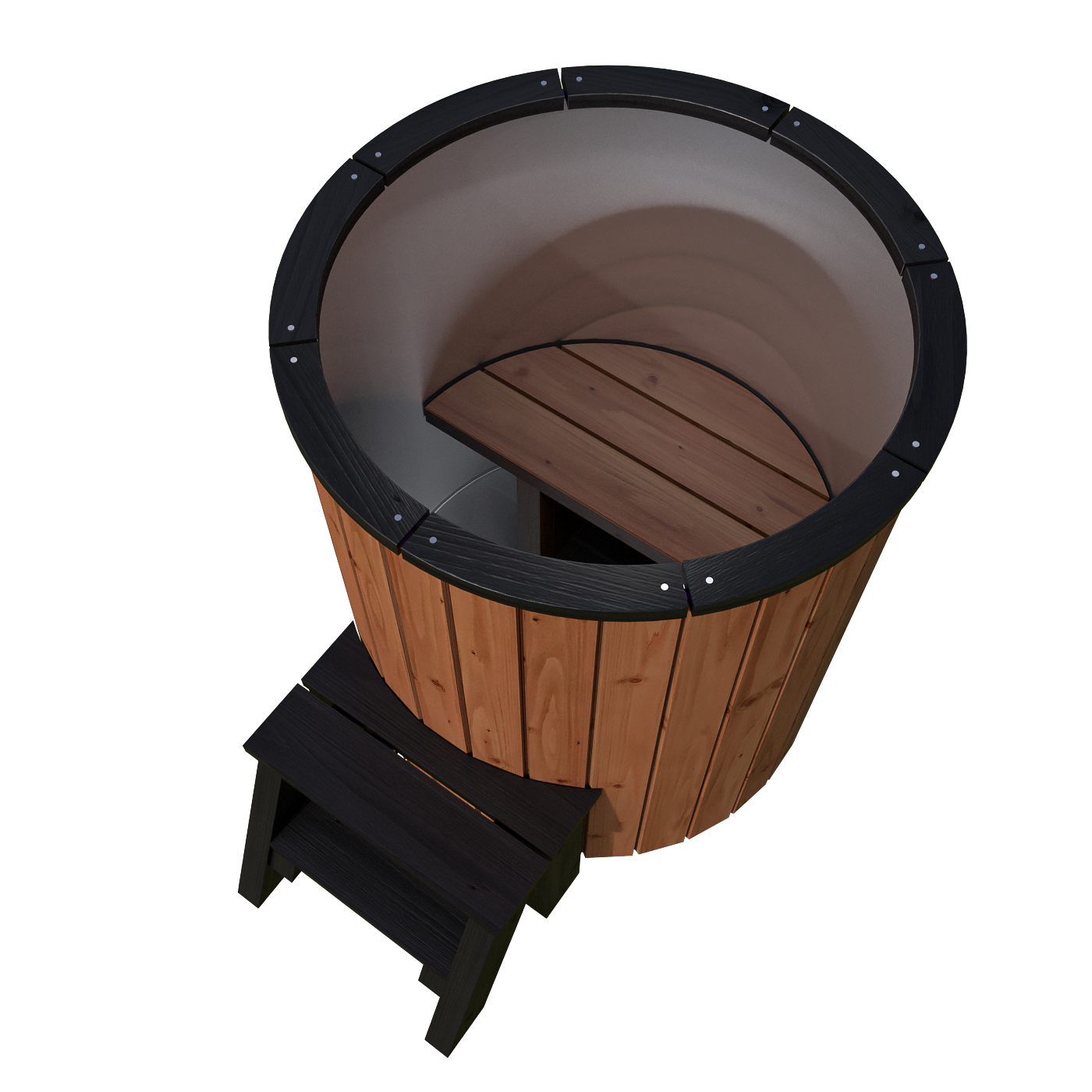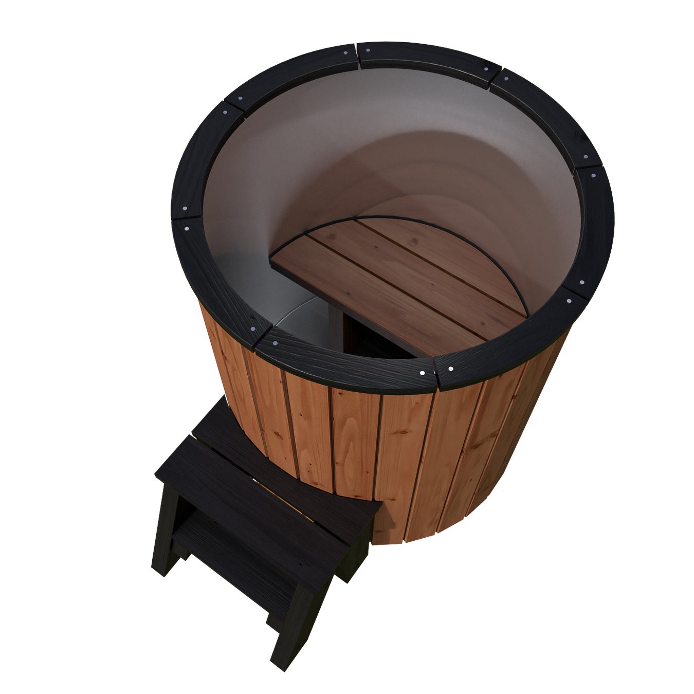 浴槽のエッジはブラックに塗装し、シックなデザインに。totonoüのバレルサウナにもフィットする仕上がりとなっています。