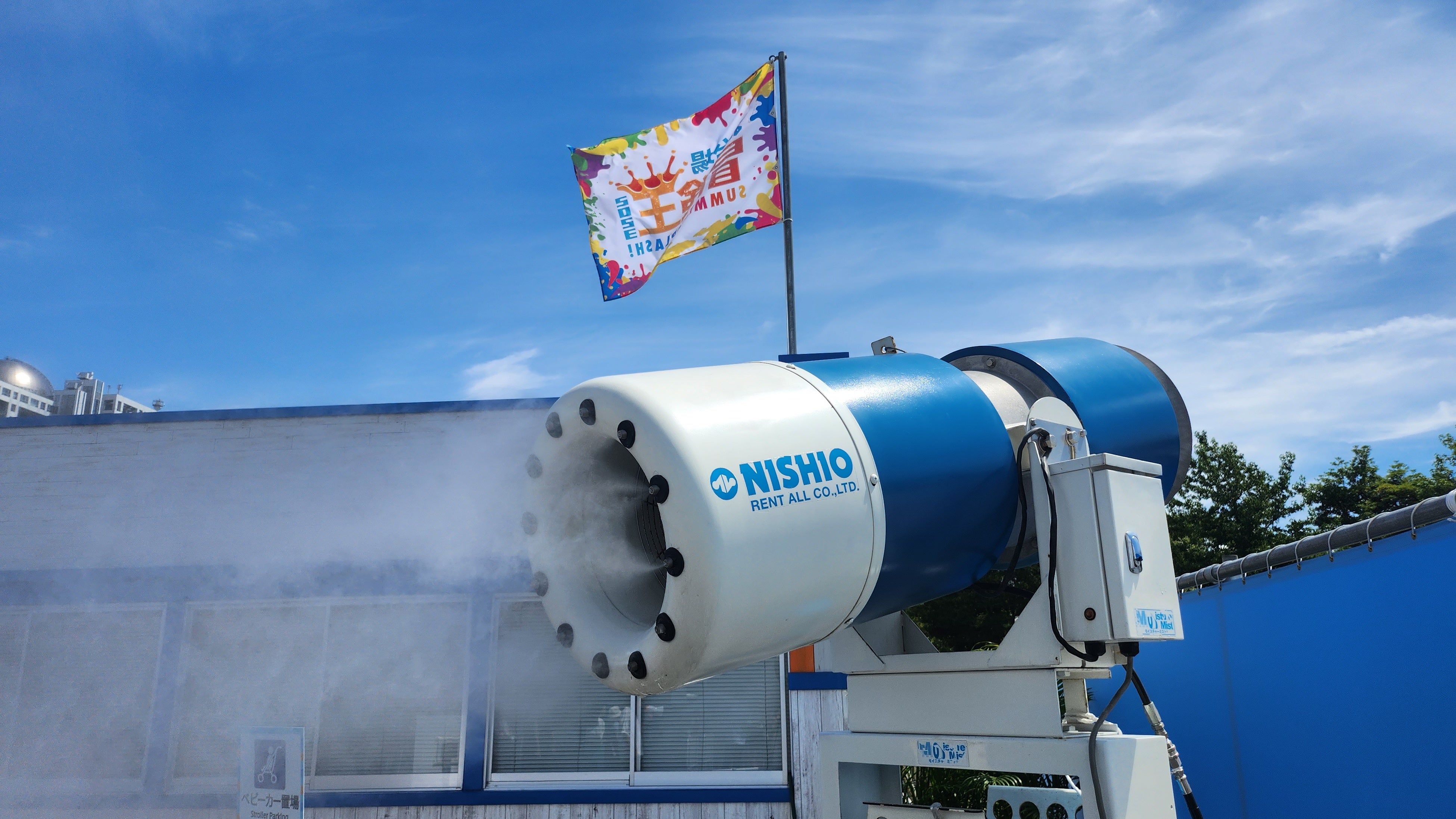本社屋エリア・冒険ランドと会場全体において、パレット噴水やミスト設備など、楽しんでいただきながら熱中症対策となる商材を提供しております。来場される皆さまがイベント中も安心してお過ごしいただけるよう、各エリアのにぎわい空間作りをサポートいたします。