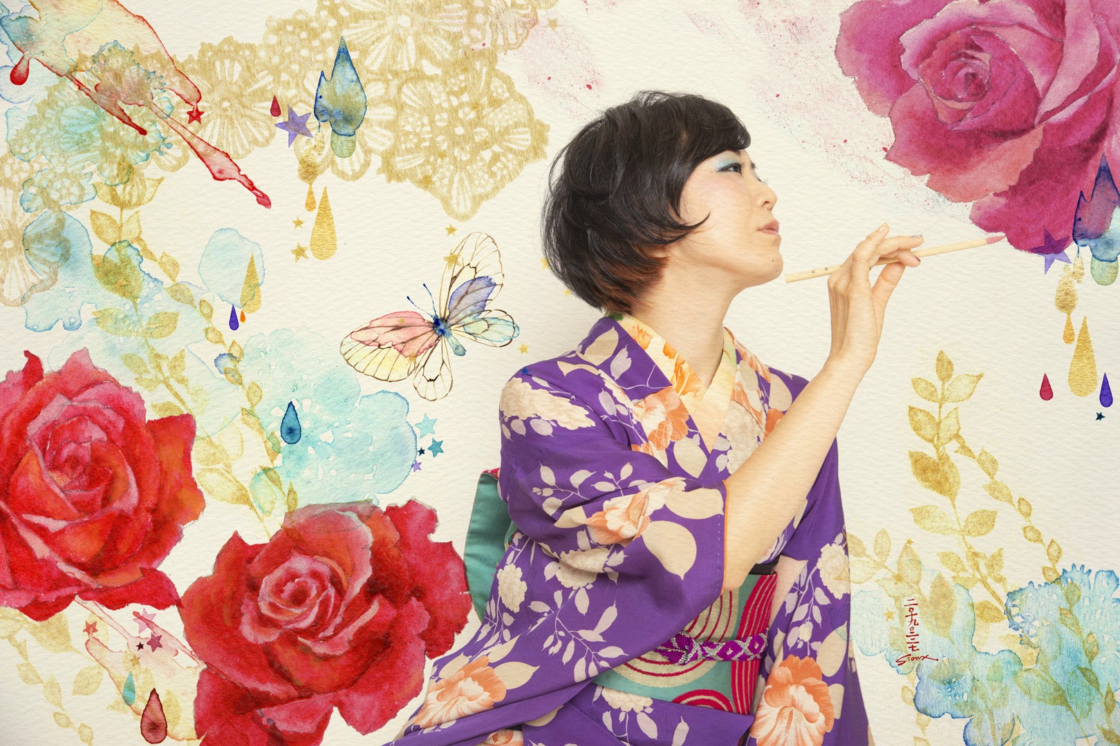 現代美人画 画家 / イラストレーター。宮城県仙台市出身、東京造形大学デザイン学部卒業。2001年よりイラストレーターとしての活動を開始し、現在ではイラストとアートの境目なく多面的に表現された女性を描き、展覧会、ライブペインティング等の活動を行う。水彩やアクリル絵の具等のアナログ技法による繊細な表現、憂いや色気のある表情と透明感、鮮やかな色彩が特徴。