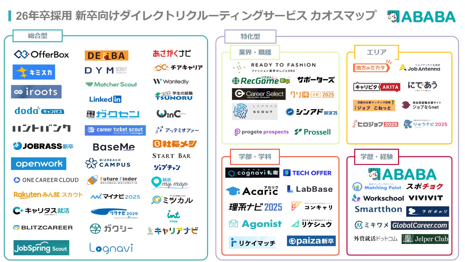 このほど弊社では新卒採用担当様の26卒採用の一助となればとの思いで「ダイレクトリクルーティングサービス」のカオスマップを作成しました。