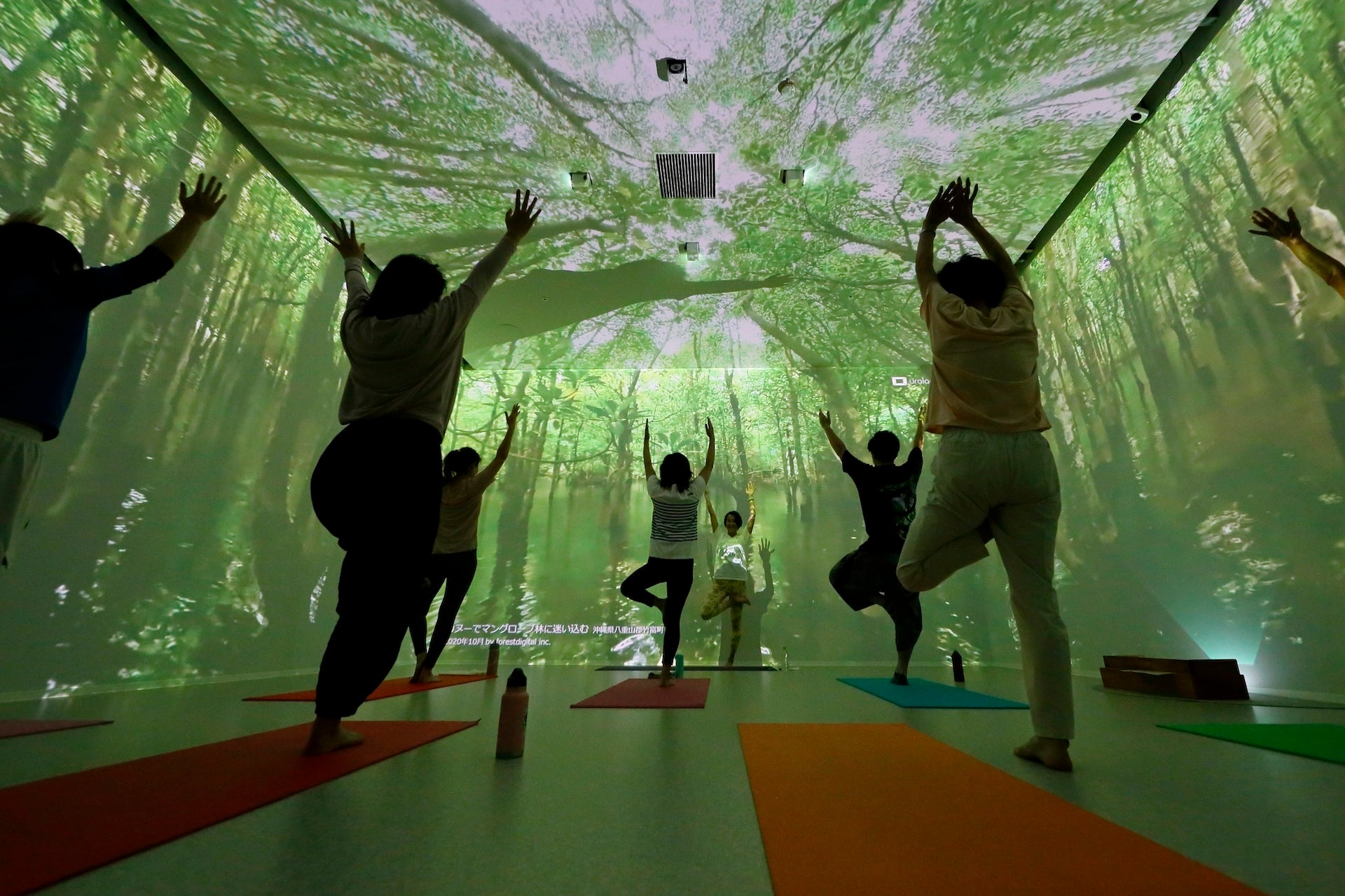 「uralaa」は、大型のマルチスクリーンによる映像やサラウンド音響システム、自然のアロマなどを用いて、どんな部屋でも瞬時に、異空間に変える空間VRです。