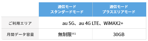 ※「プラスエリアモード」で当月ご利用の通信量が30GB を超えた場合、当月末までの通信速度を送受信最大128kbpsに制限します。スタンダードモード(標準)のご利用時は対象外です。翌月1日に制限を順次解除します。