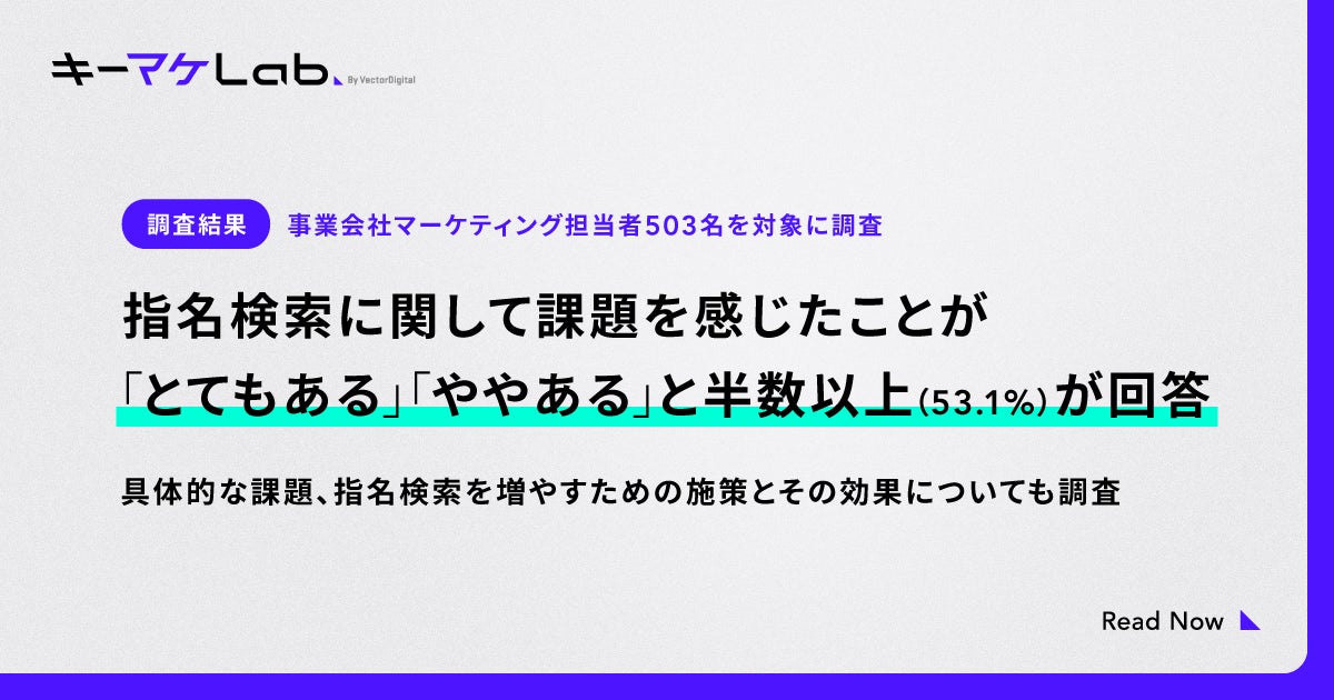 株式会社キーワードマーケティング(本社:東京都中央区、代表取締役会長:滝井 秀典、以下「キーワードマーケティング」)が展開するメディア「キーマケLab(読み:キーマケラボ)」は、従業員数50名以上の事業会社におけるマーケティング担当者503名を対象に、「指名検索に対する課題や悩みに関する調査」を実施いたしました。