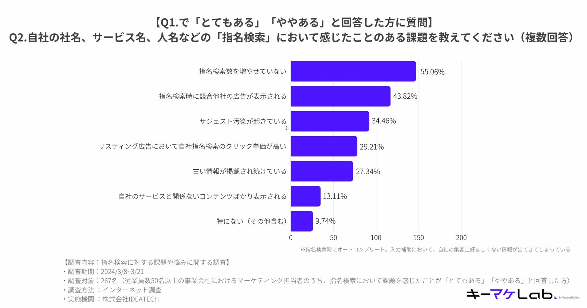 その結果、マーケティング担当者の半数以上が指名検索に課題を感じていることが明らかになりました。