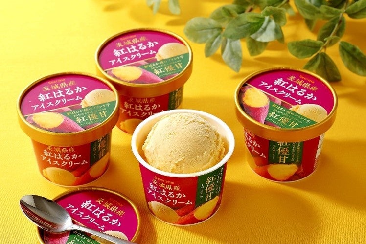 茨城県産「紅はるか」の中でも、追熟して甘みを増したJAなめがたしおさいの「紅優甘」(べにゆうか)のペーストを使用。さつまいもの甘さと北海道豊富町産生クリームのコクが広がるアイスクリームです。北海道のご当地コンビニ「セイコーマート」(北海道・茨城県・埼玉県)、ハセガワストア、タイエー、ハマナスクラブ(北海道)で人気の商品を今回夏のさつまいも博2023で販売します。
