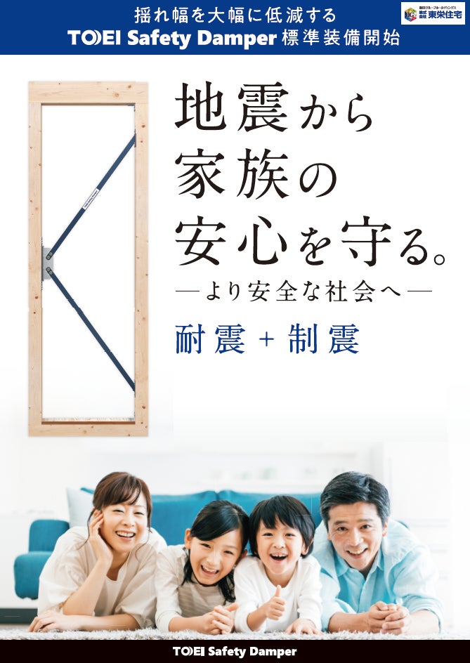 2000年に施行された耐震基準では、震度6強から7クラスの大きな地震でも、1回では倒壊しないように設計されています。しかし、この耐震基準は、大地震後の地震活動(余震等)までは考慮されていません。そこで、より地震に強い家づくりが必要との思いから、東栄住宅は住友ゴム工業株式会社と株式会社カナイの3社共同で、「TOEI Safety Damper」を開発いたしました。
