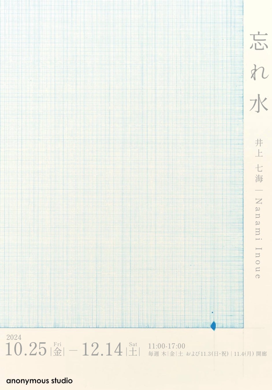 この度、anonymous studioでは、井上七海の個展「忘れ水」を2024年10月25日(金)から12月14日(土)まで開催いたします。